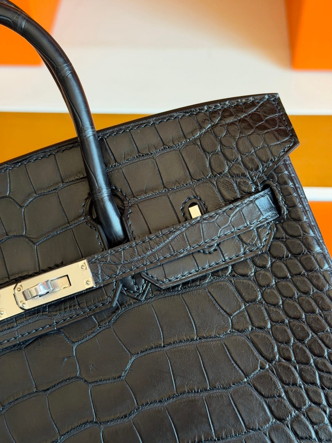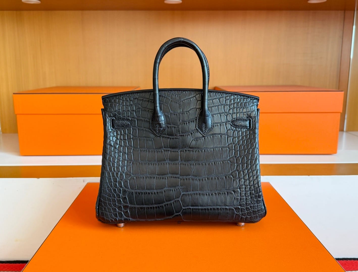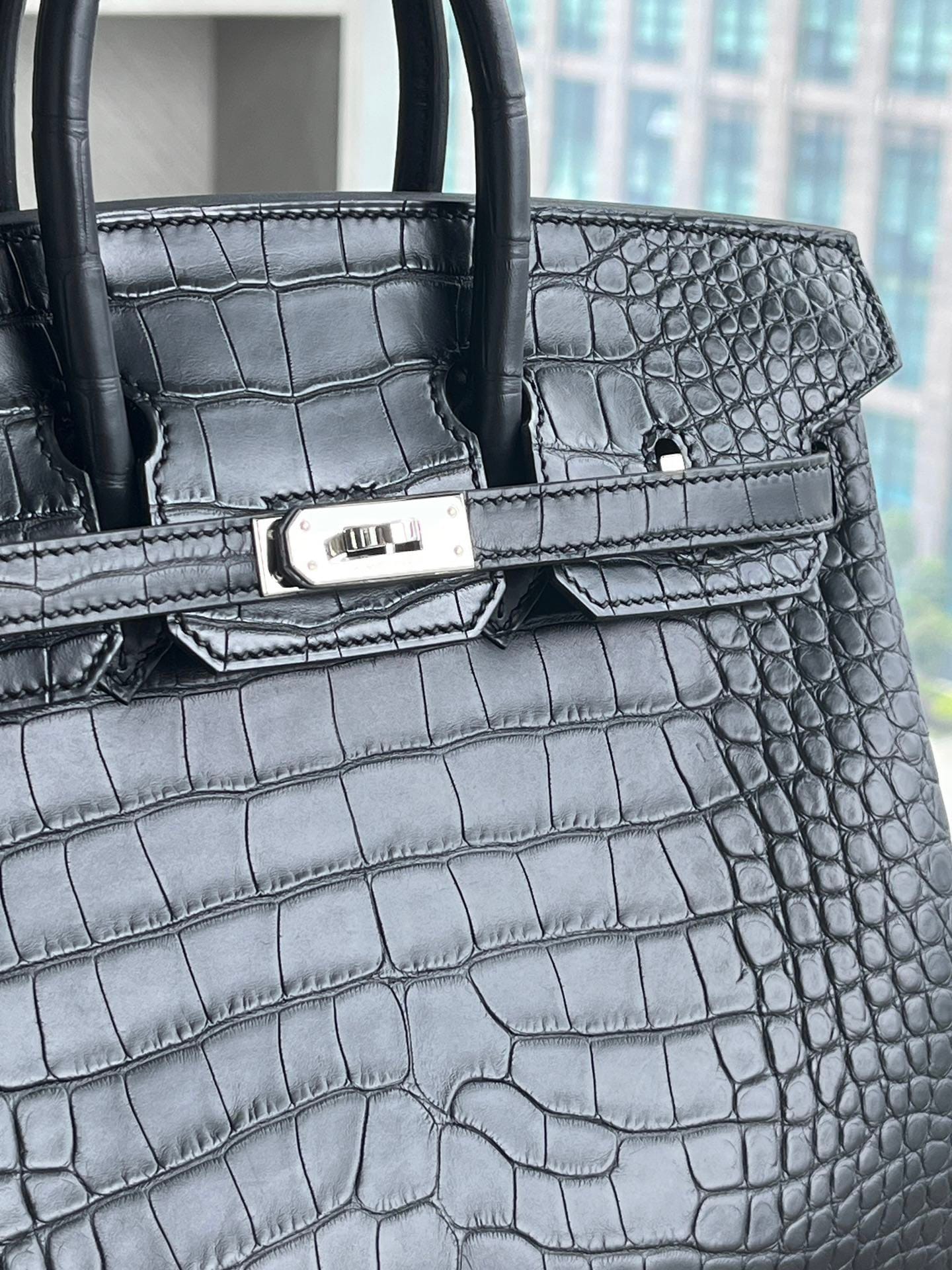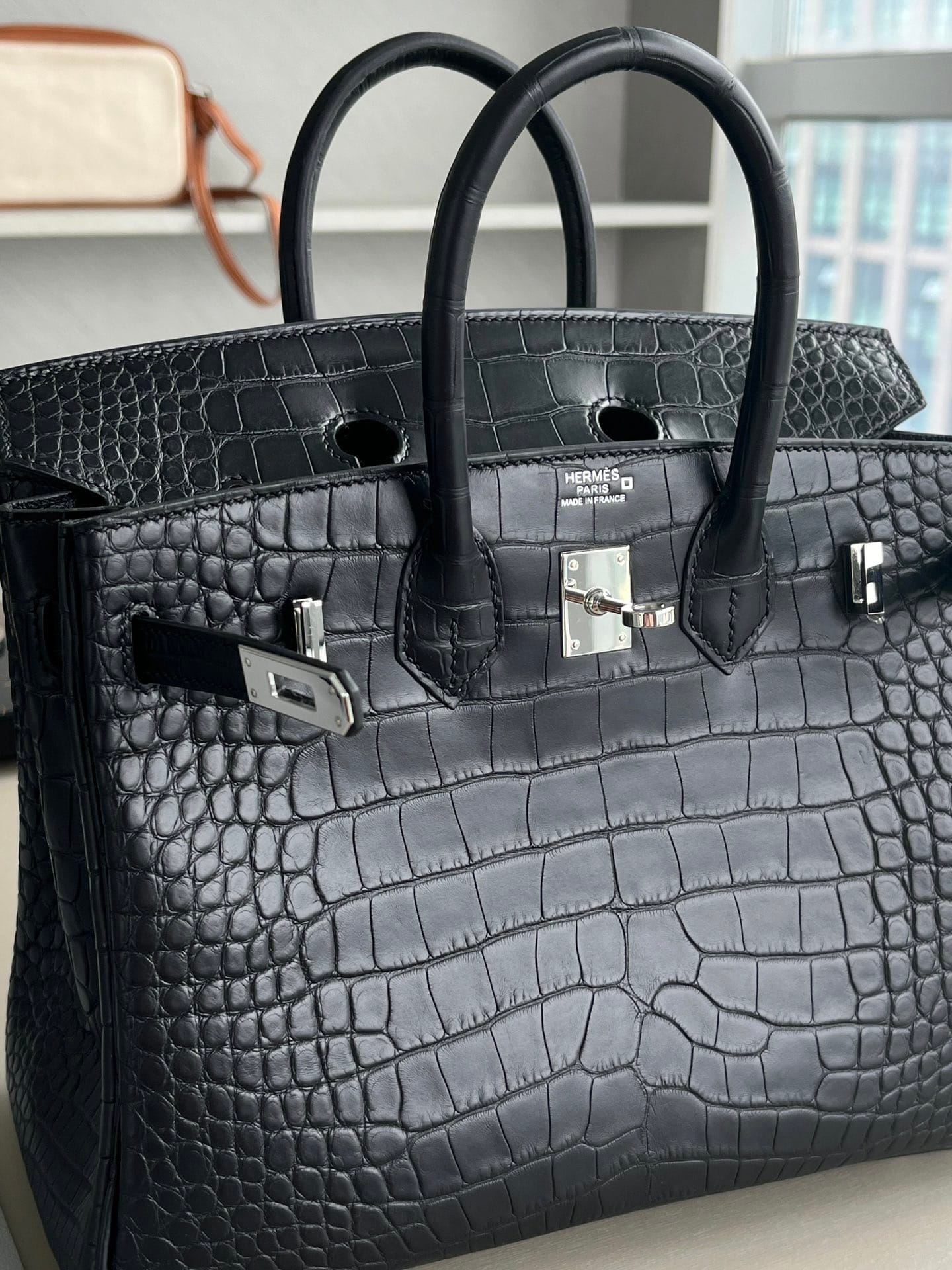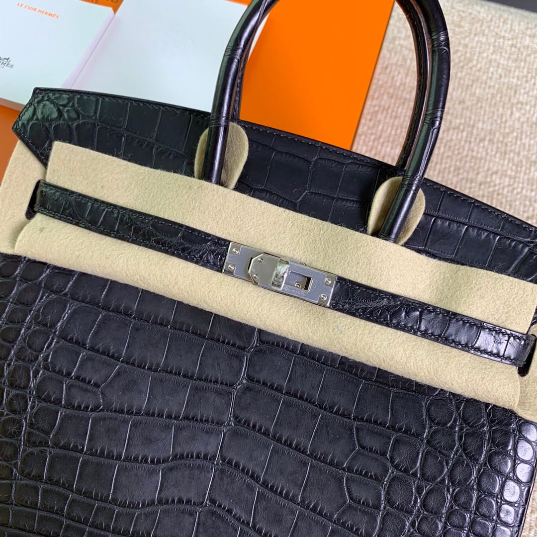 Hermès Birkin 25 Noir(Black) Matte Alligator Leather Handbag Palladium Hardware 89