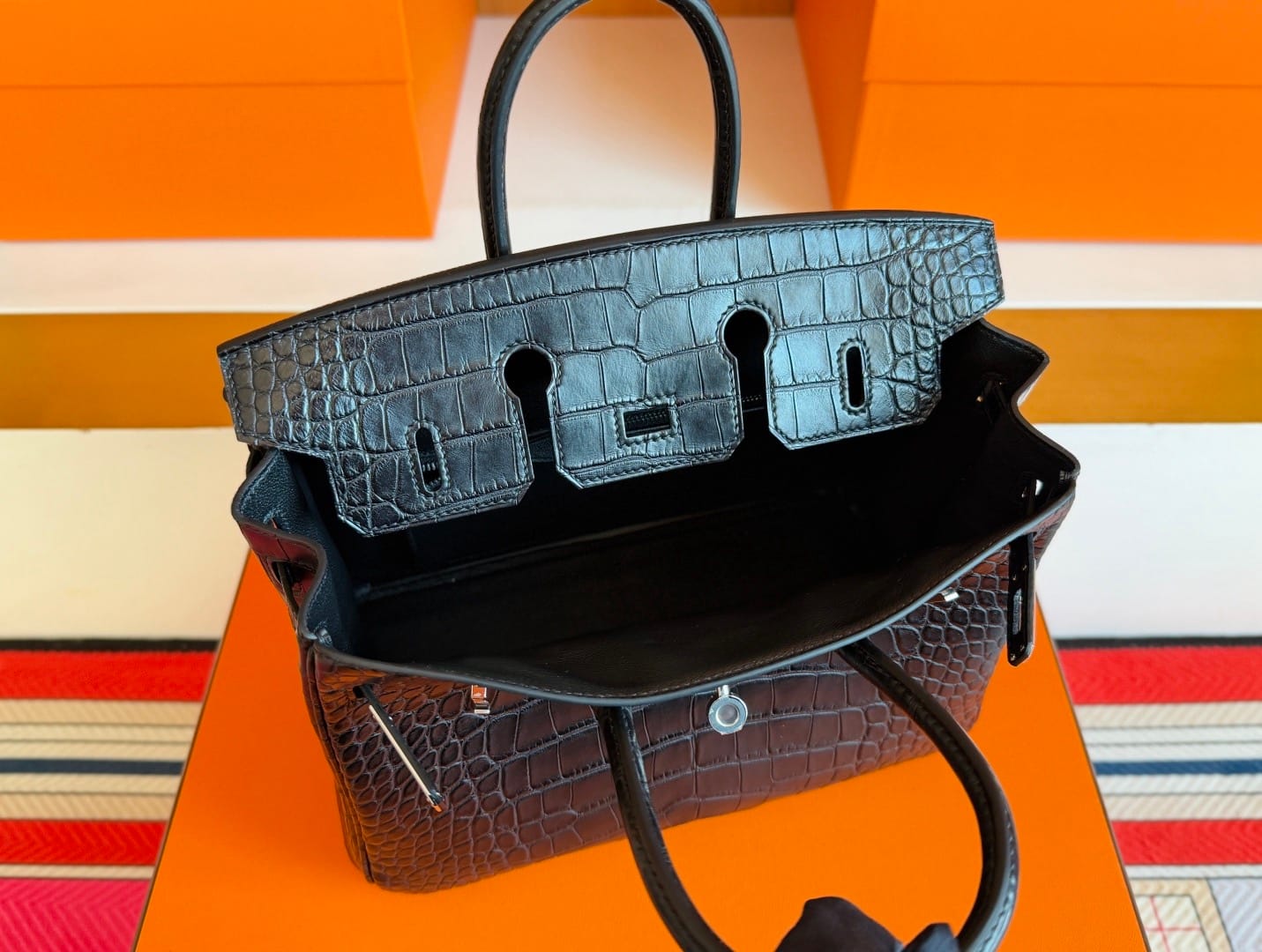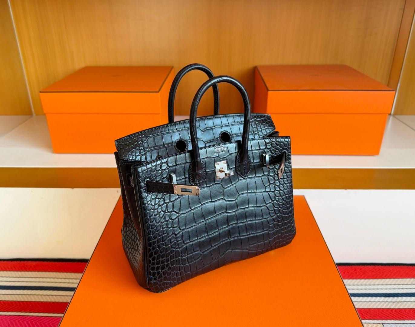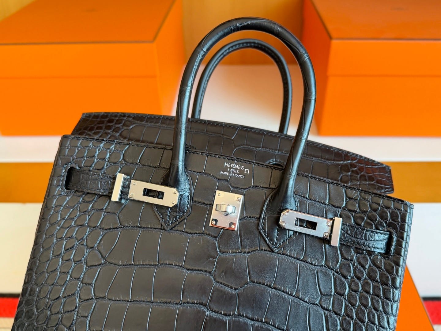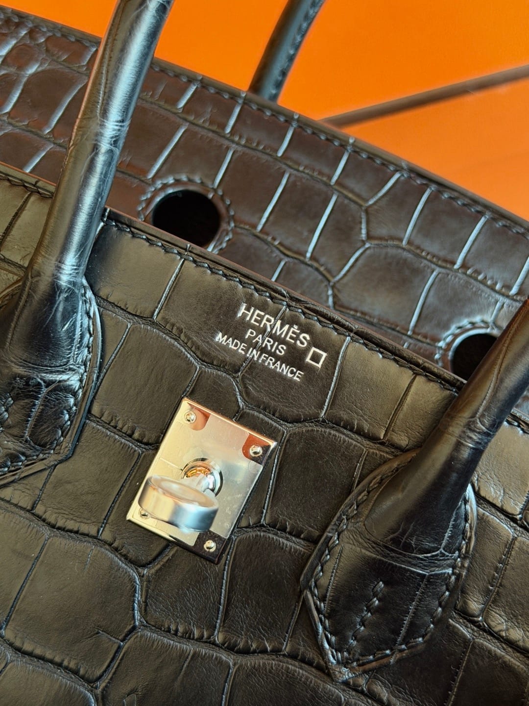 Hermès Birkin 25 Noir(Black) Matte Alligator Leather Handbag Palladium Hardware 89