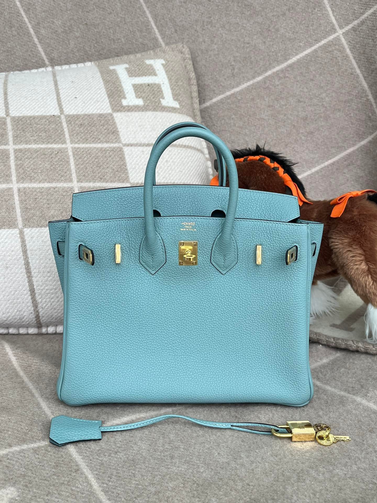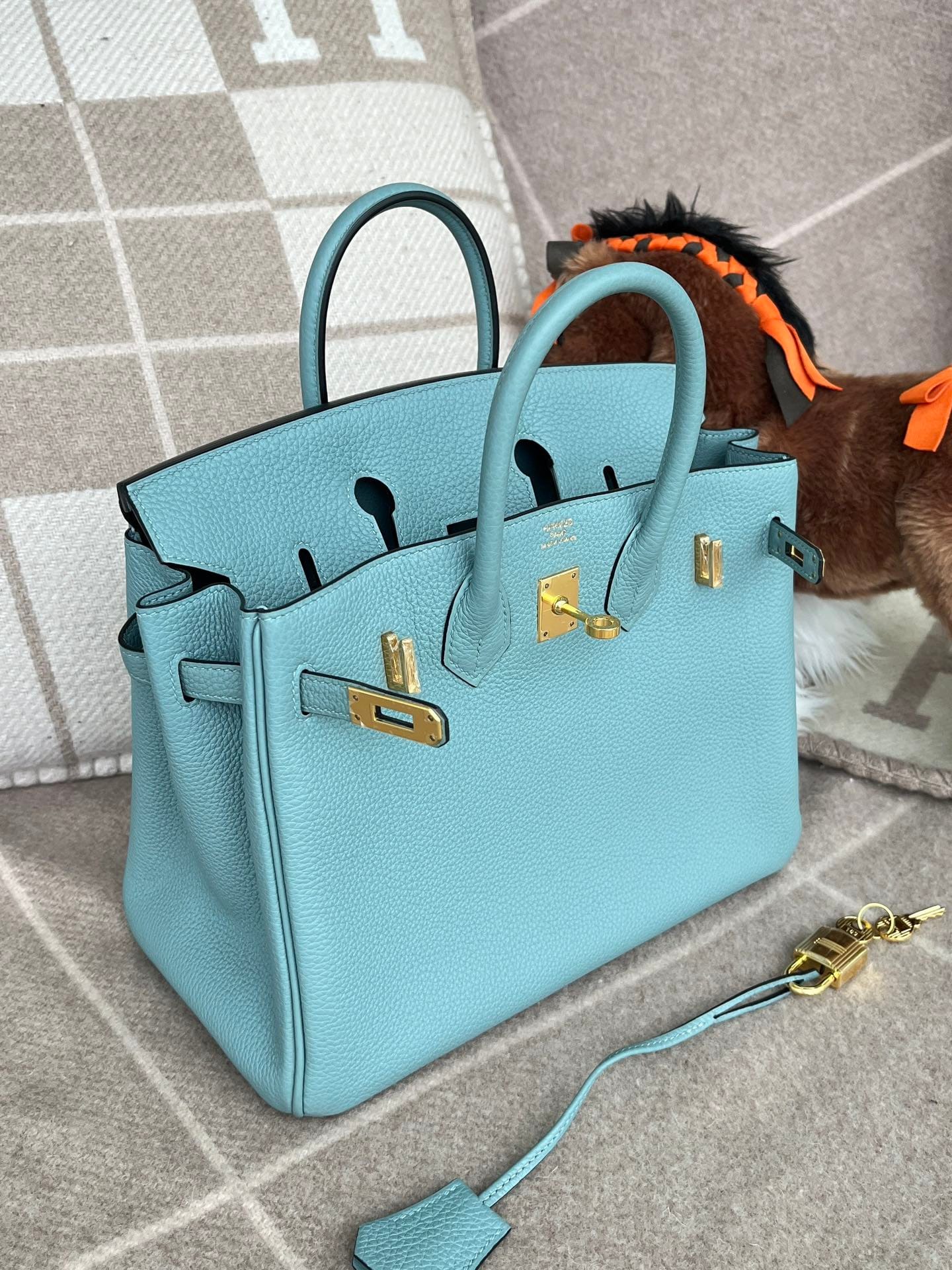Hermès Birkin 25 Bleu Atoll Togo Leather Handbag Gold Hardware