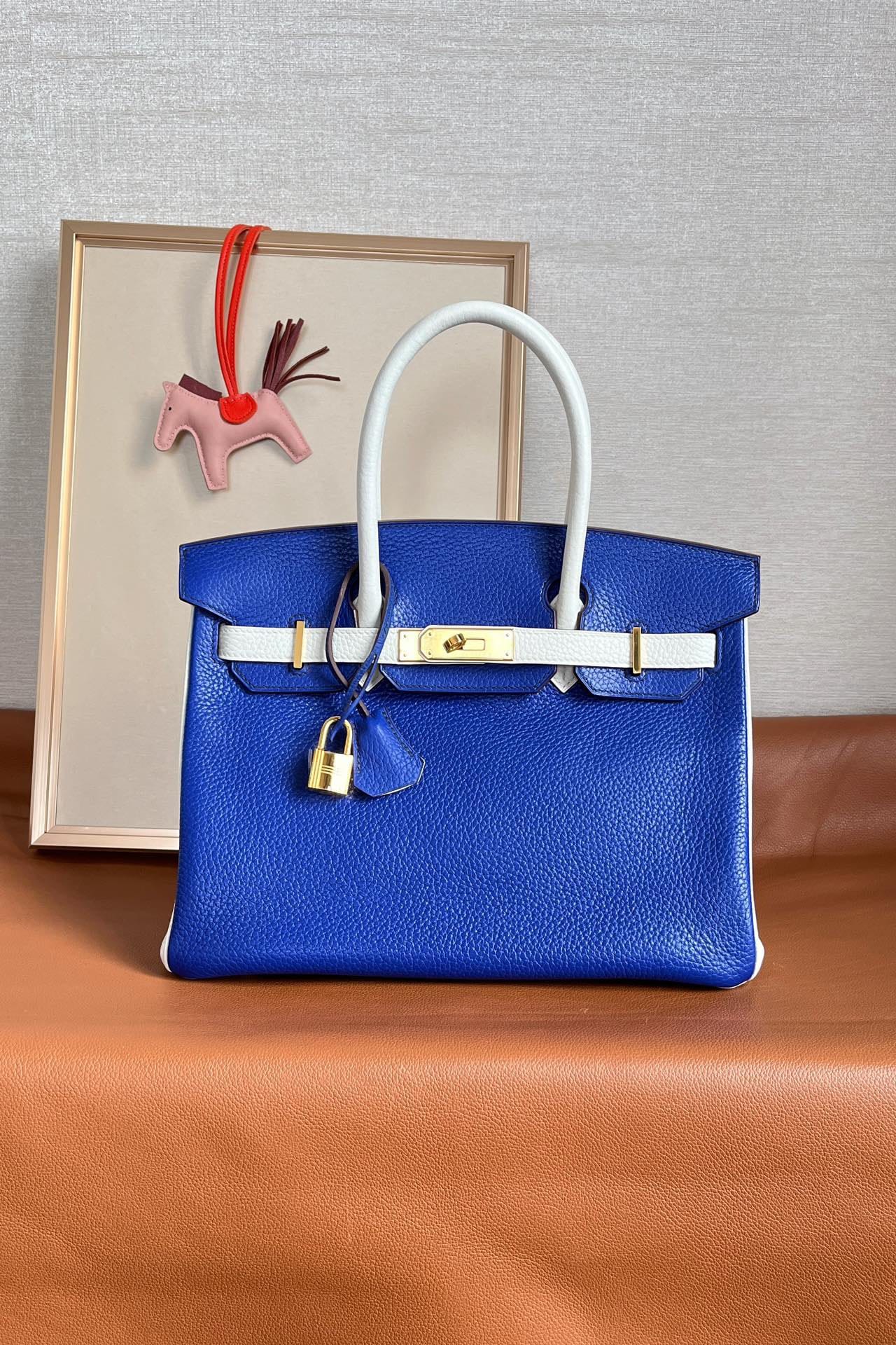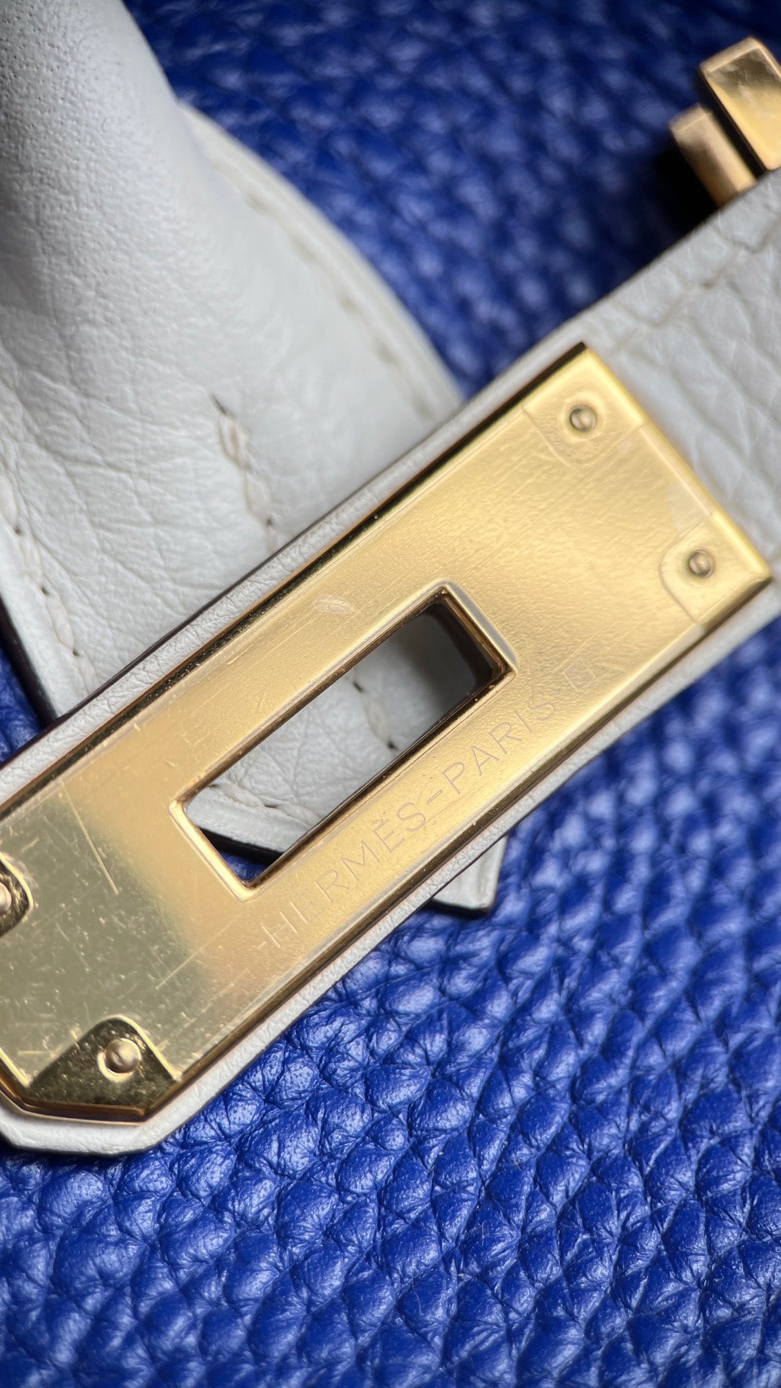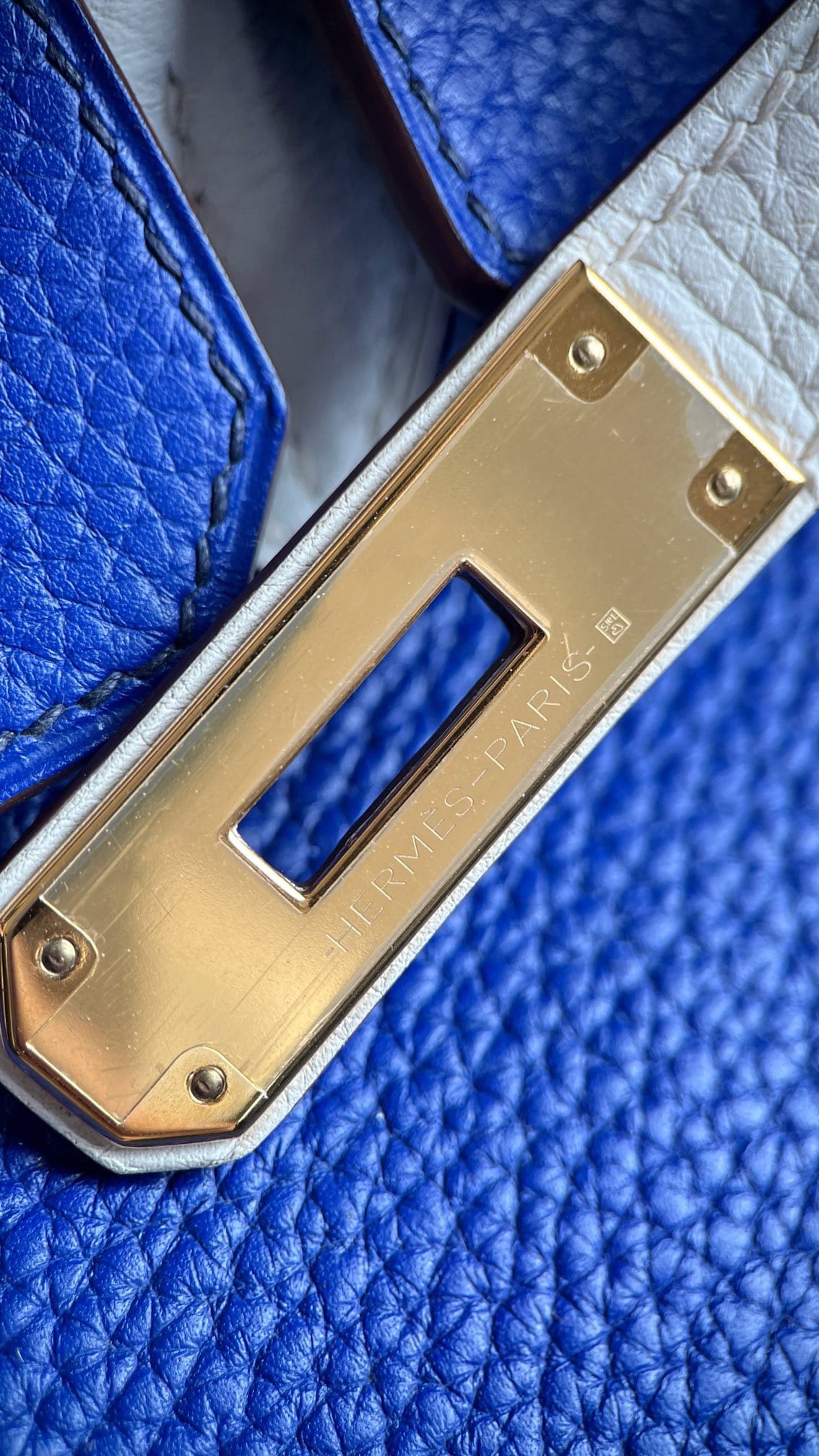 Hermès Birkin 25 Bleu Electric and Blanc Togo Leather Handbag Gold Hardware