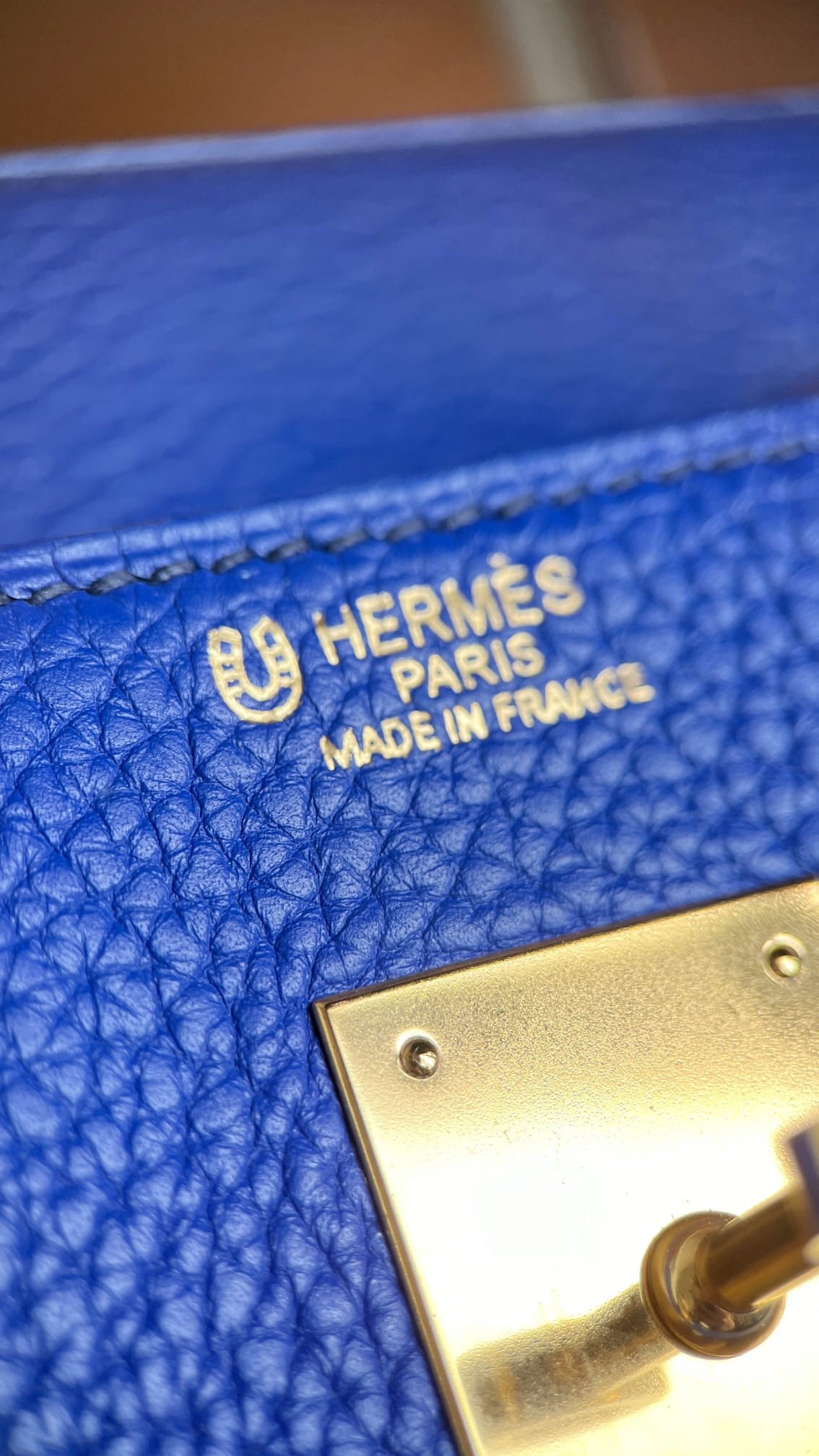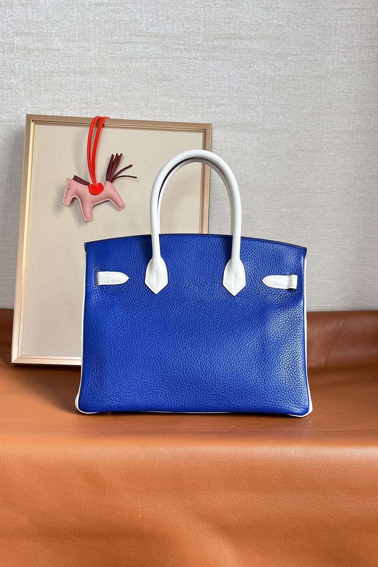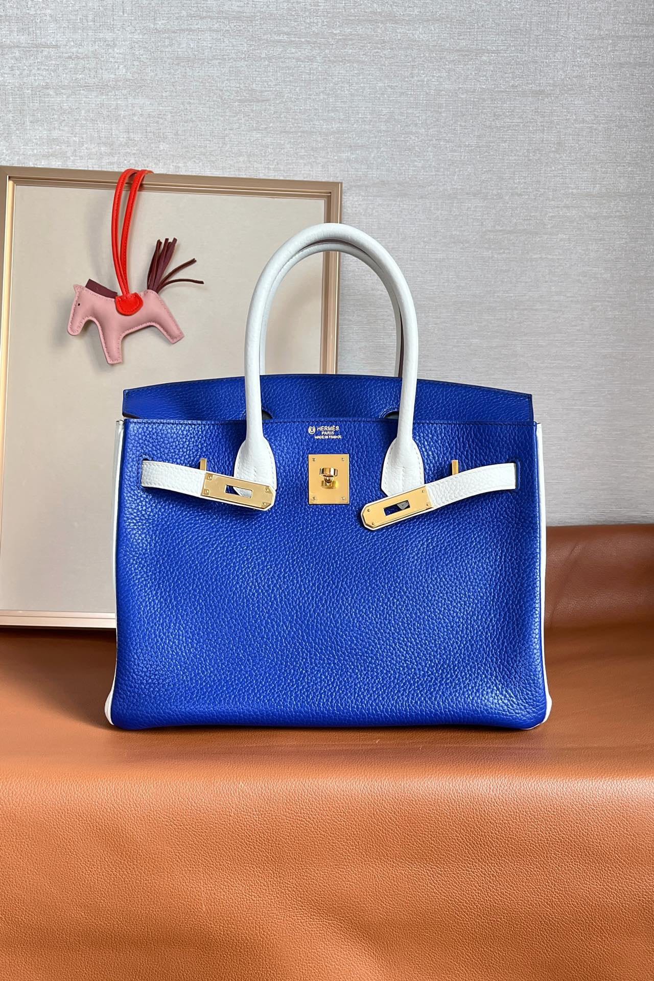 Hermès Birkin 25 Bleu Electric and Blanc Togo Leather Handbag Gold Hardware