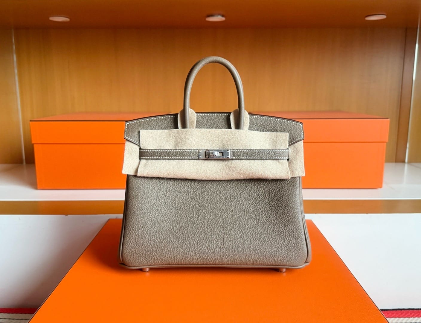 Hermès Birkin 25 Elephant Grey Togo Tote Bag, with its cloud-soft Elephant Grey Togo leather, exudes endless sophistication in subtle tones, like an elegant ruler of the urban jungle!