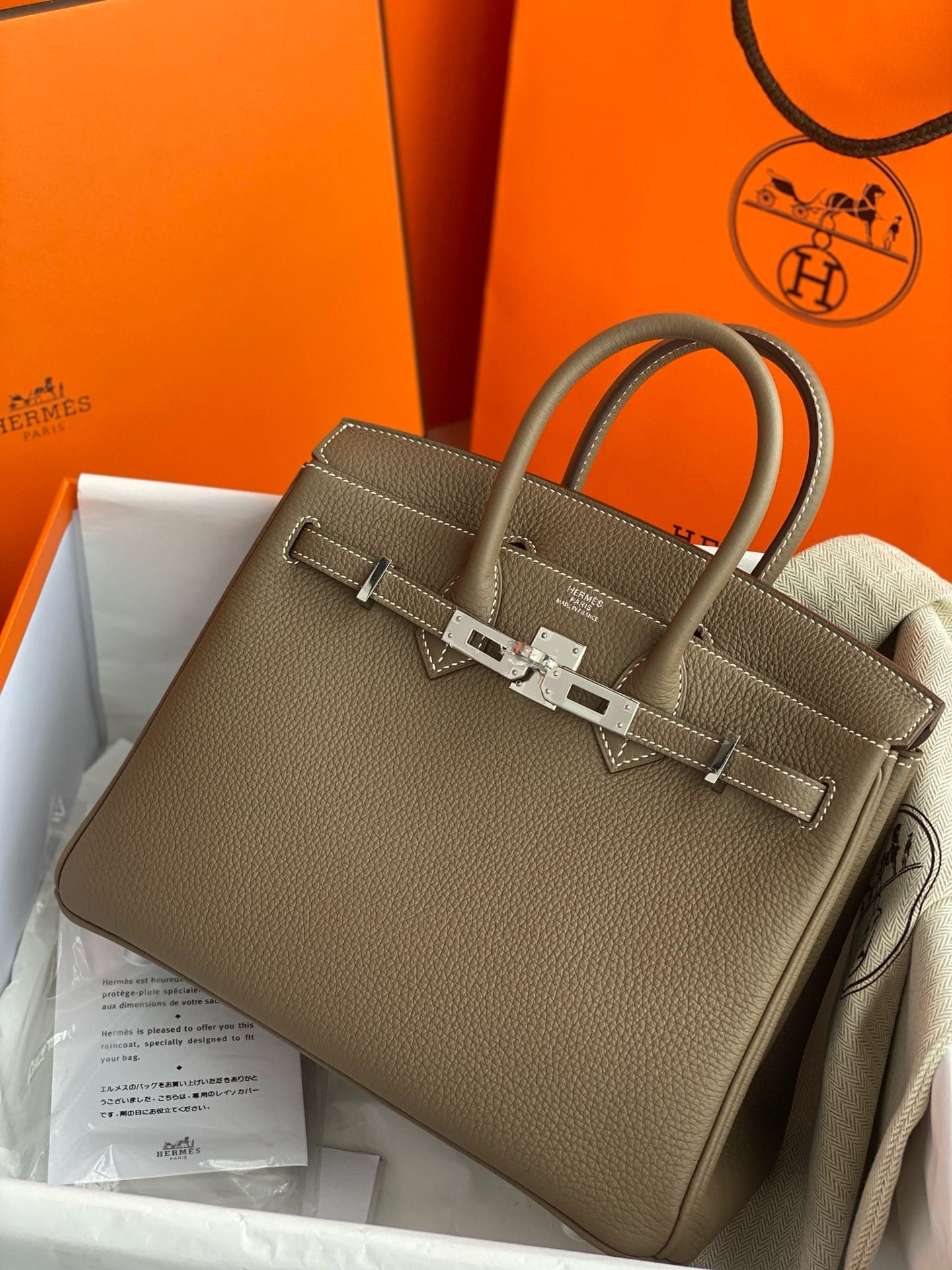 Hermès Birkin 25 Elephant Grey Togo Leather Handbag Palladium Hardware