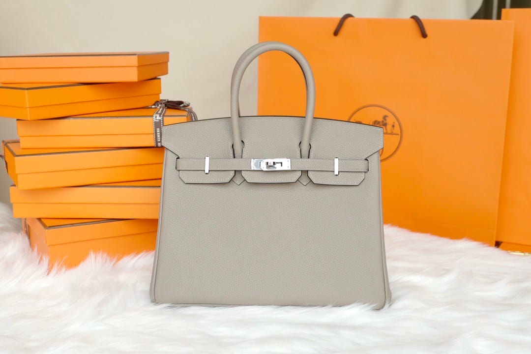 Birkin25 Hermès Birkin 25 Gris Perle(Pearl Grey) Togo Leather Handbag Palladium Hardware Condition: Never Worn Accompanied by: Hermès box, Hermès dustbag, clochette, lock, two