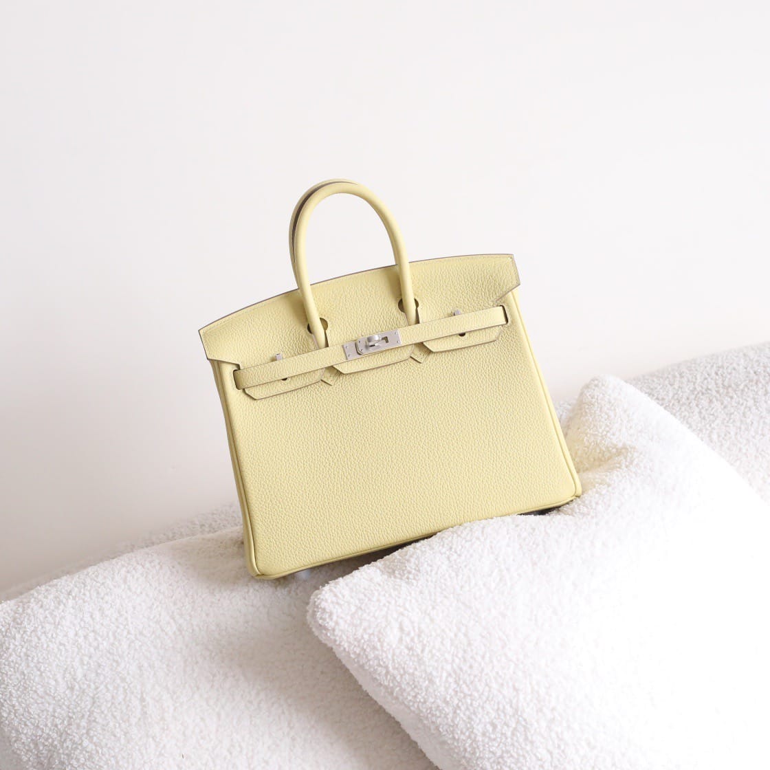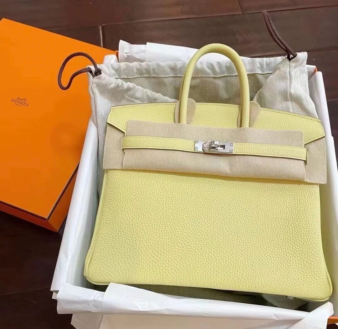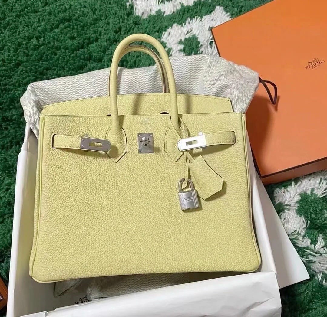 Hermès Birkin 25 Jaune Poussin Togo Leather Handbag Palladium Hardware