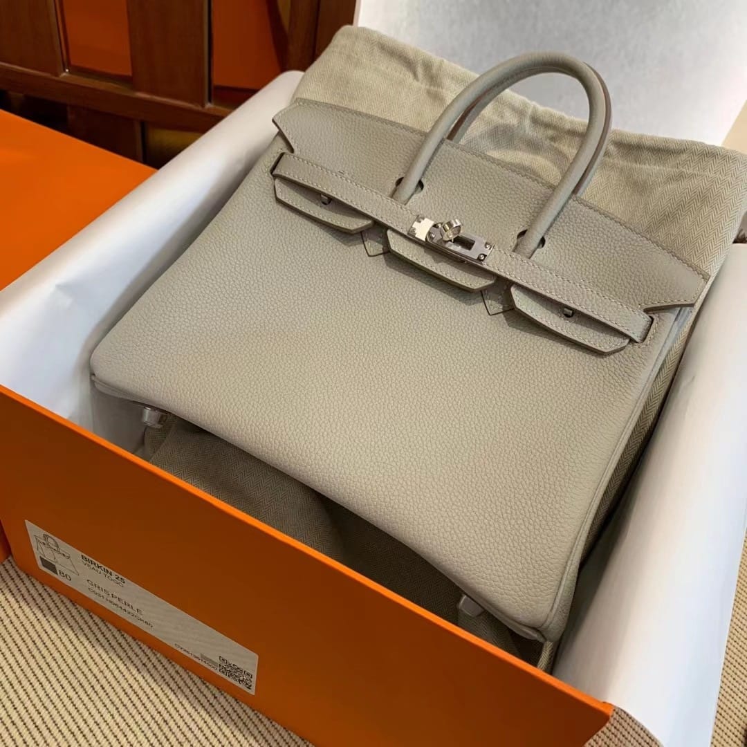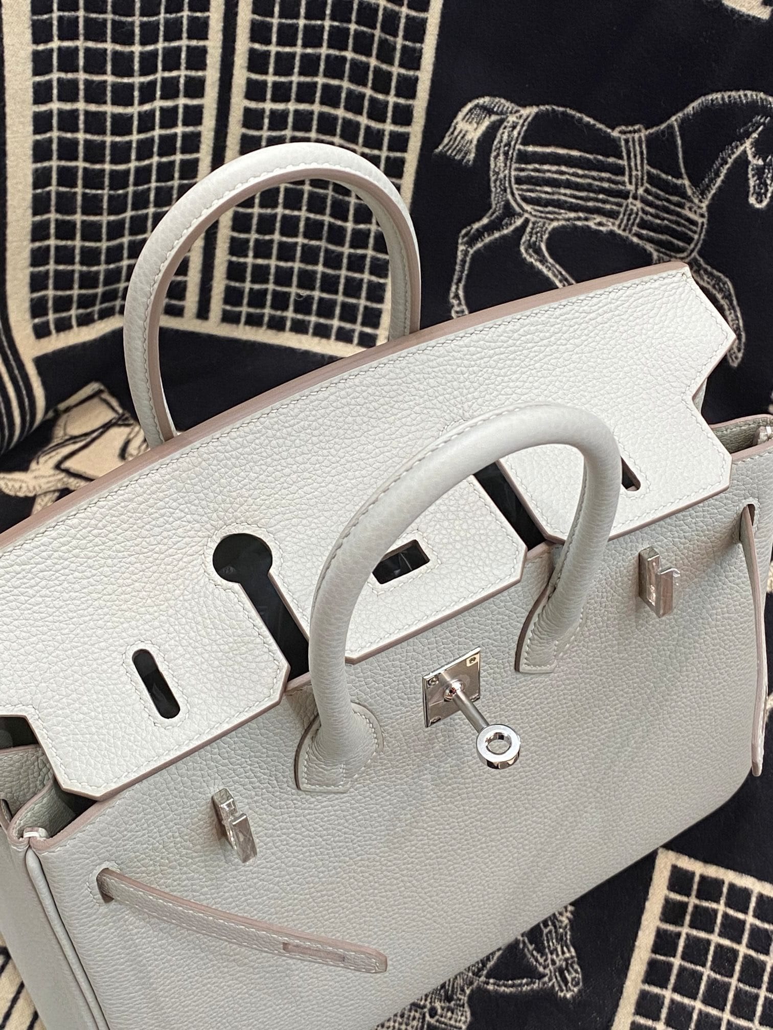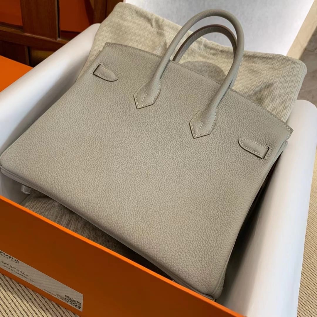 Hermès Birkin 25 Gris Perle(Pearl Grey) Togo Leather Handbag Palladium Hardware