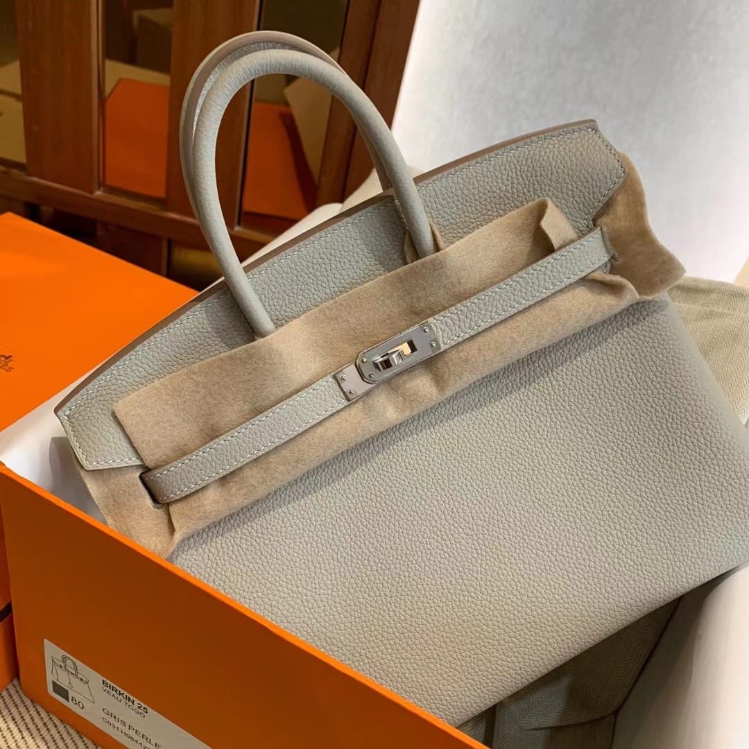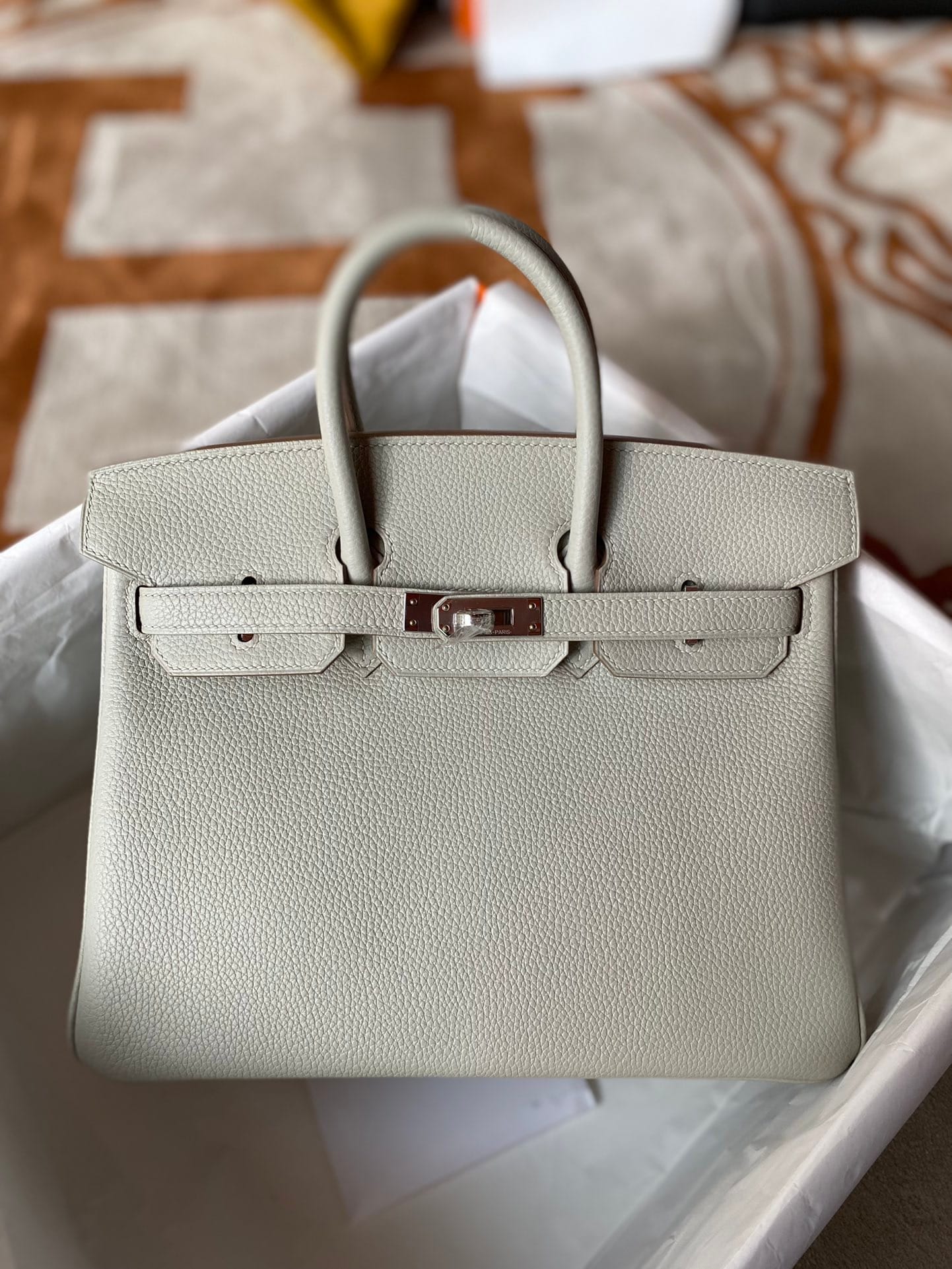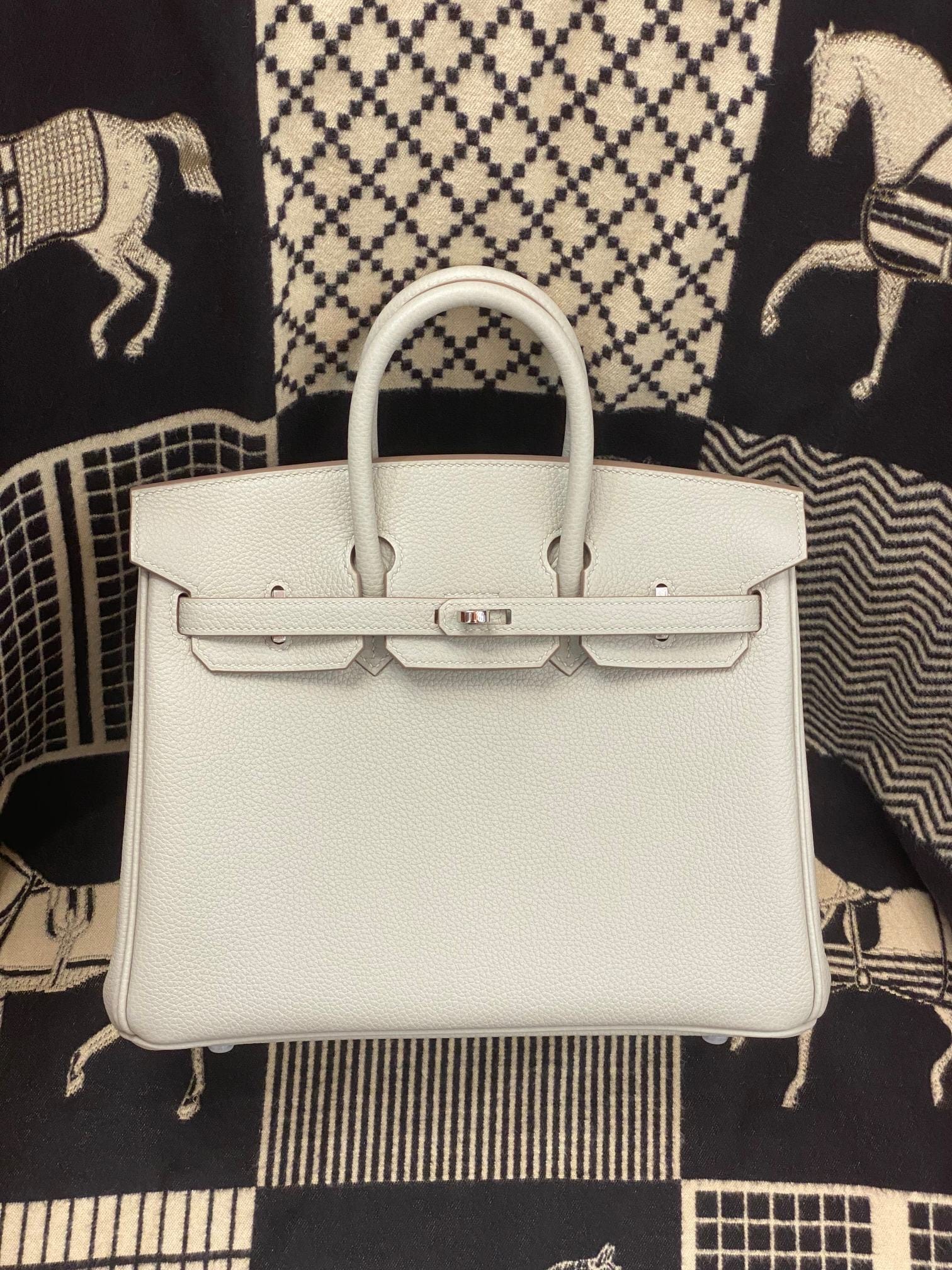 Hermès Birkin 25 Gris Perle(Pearl Grey) Togo Leather Handbag Palladium Hardware