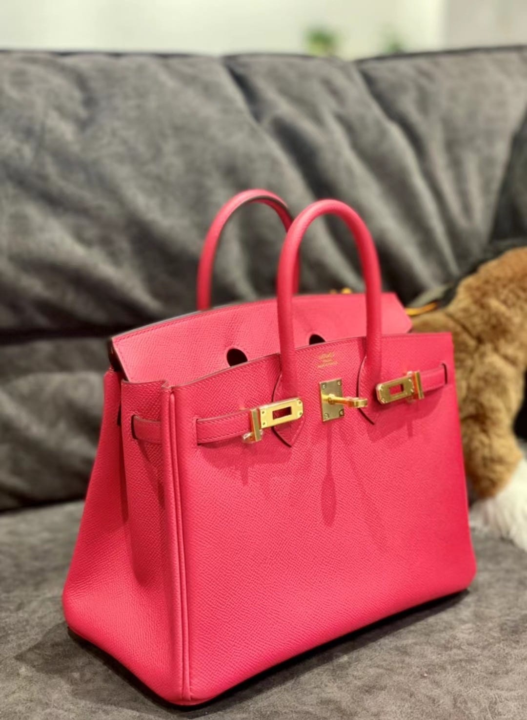 Hermes Birkin 25 Rose Extreme Epsom Leather Handbag Gold Hardware