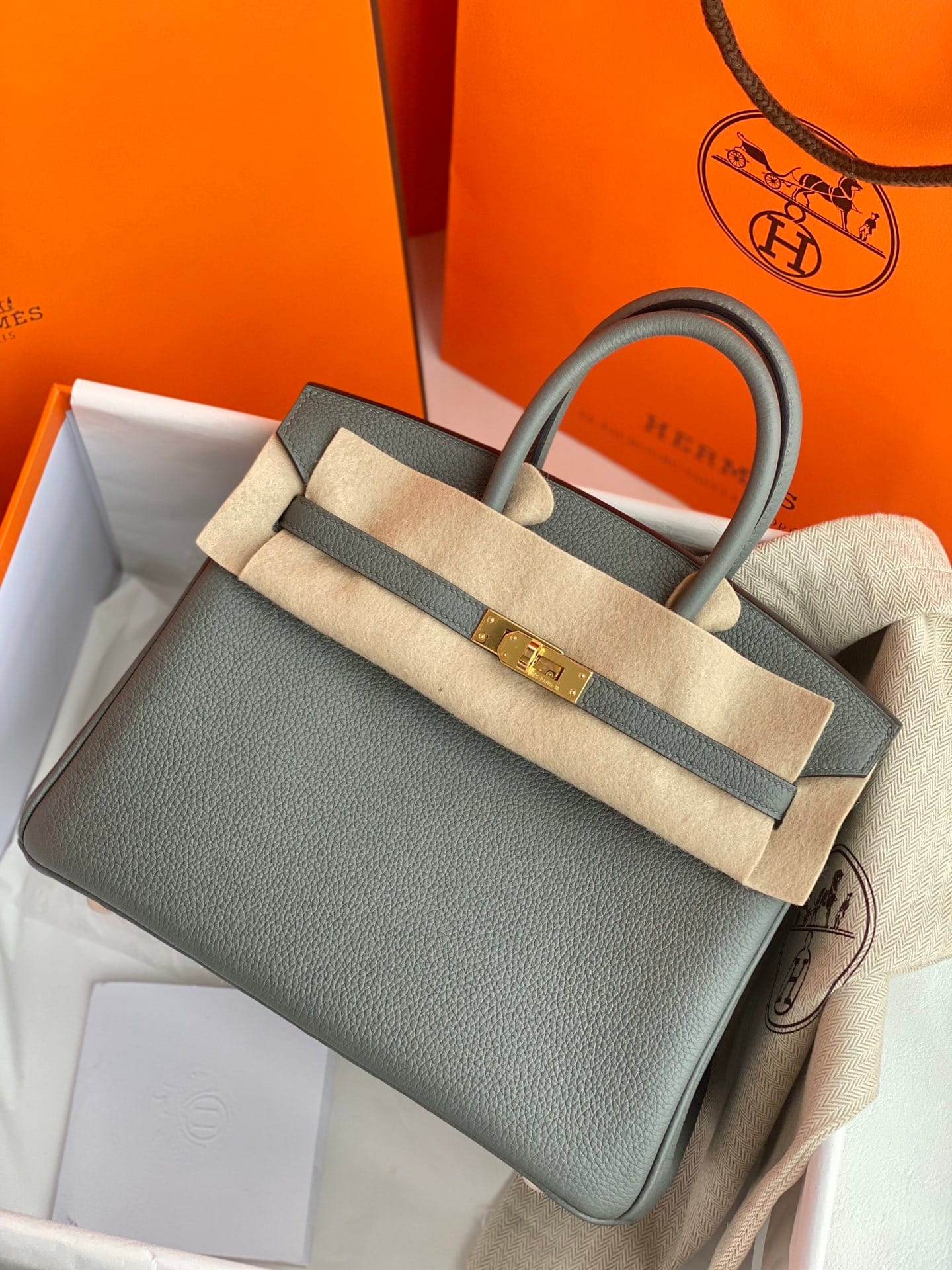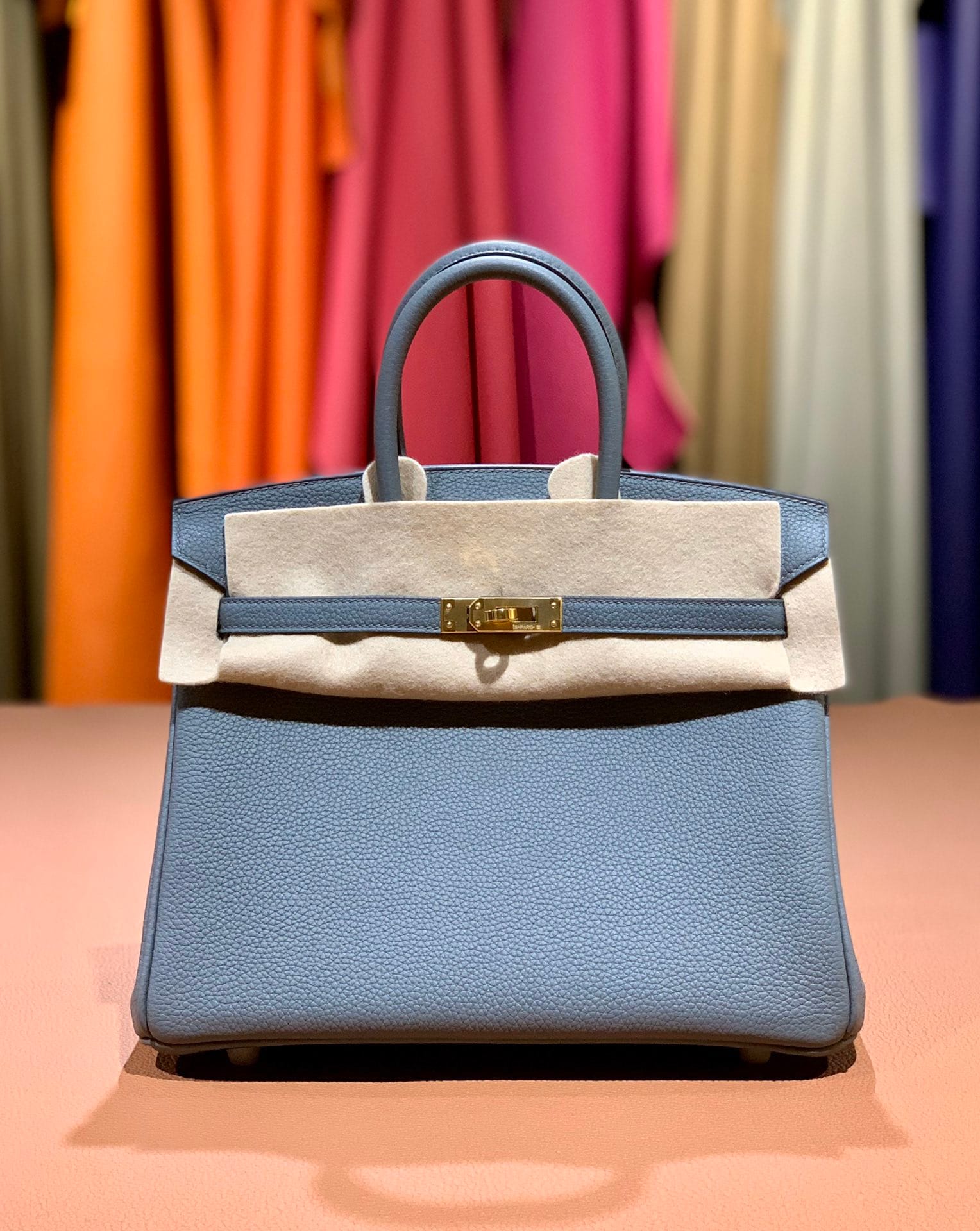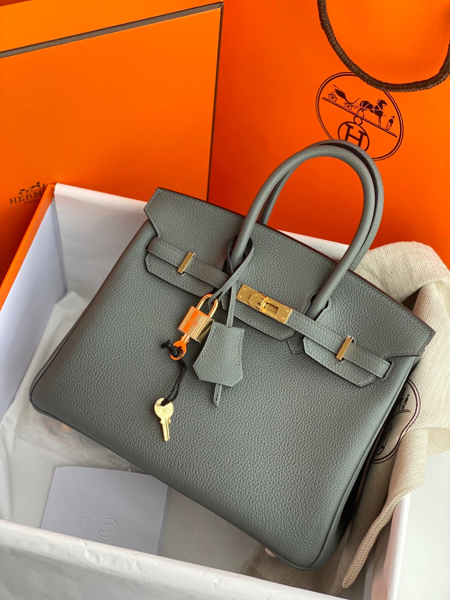 Birkin25 Hermès Birkin 25 Bleu Atoll Togo Leather Handbag Gold Hardware Condition: New and never worn (Plastic on hardware) Accompanied by: Hermès box,