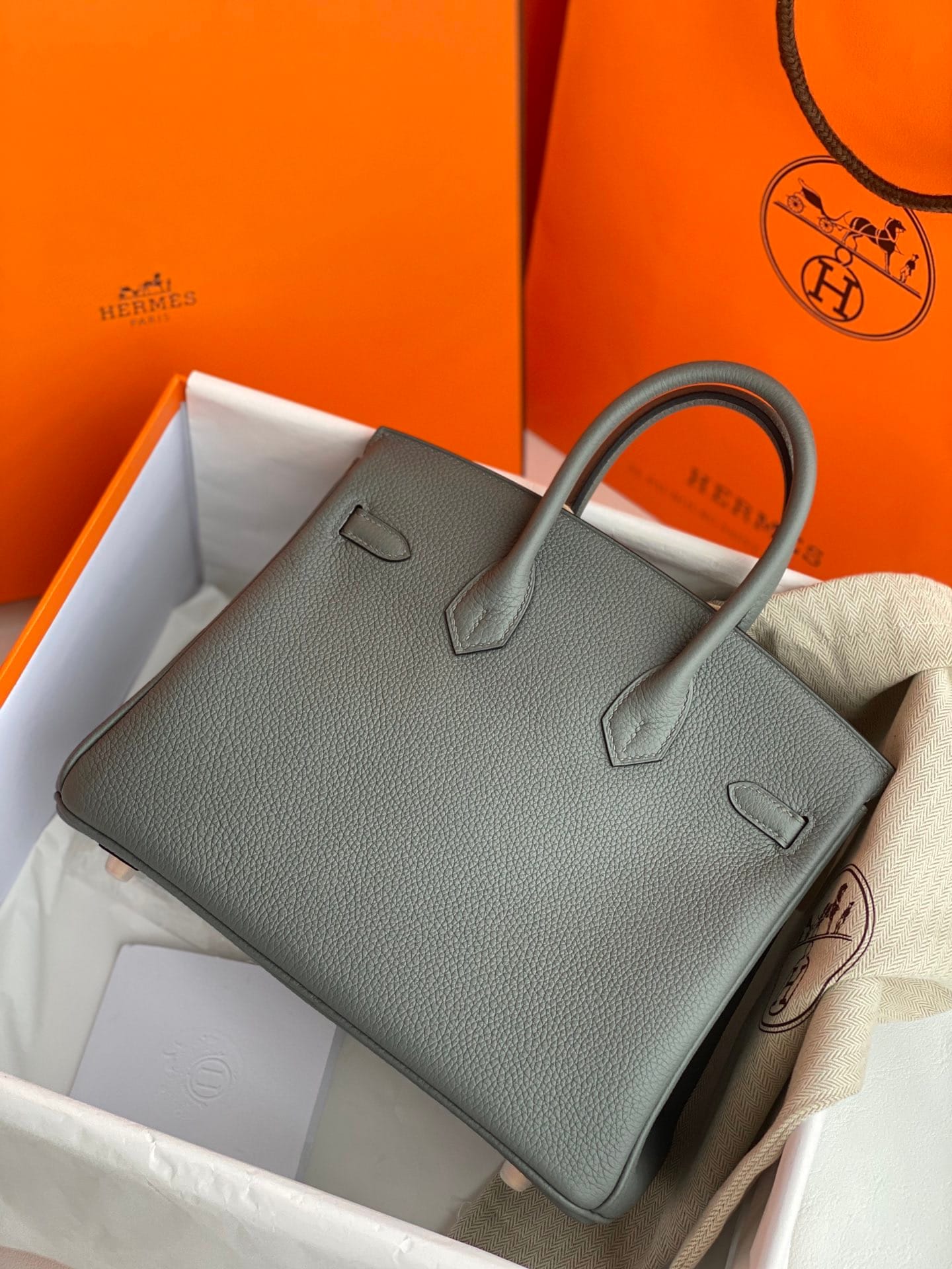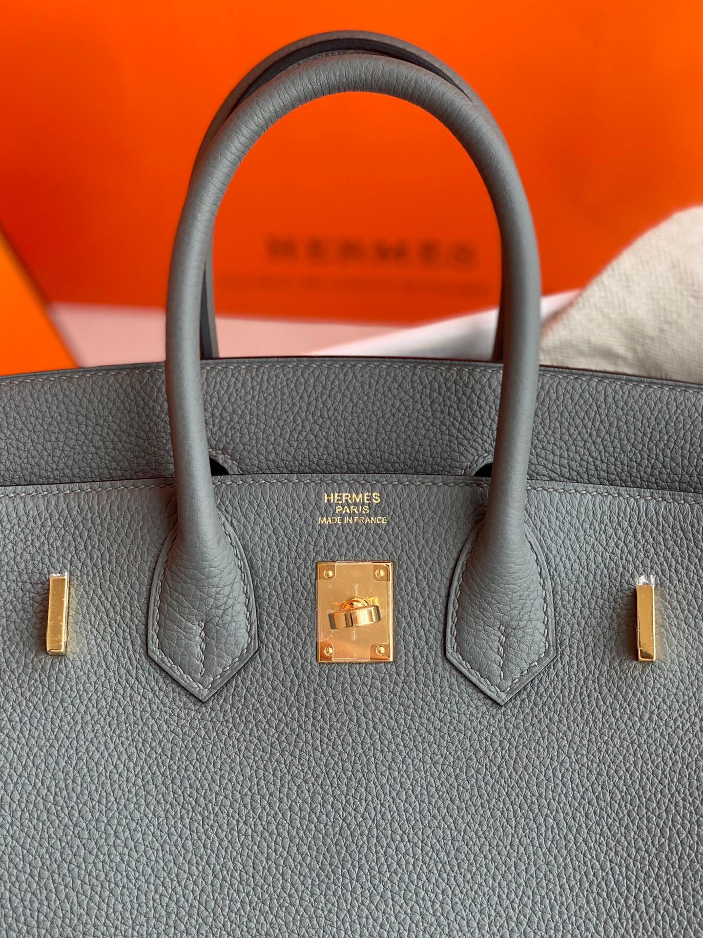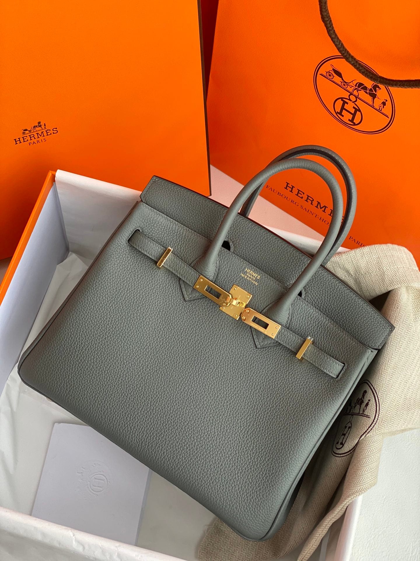 Birkin25 Hermès Birkin 25 Bleu Atoll Togo Leather Handbag Gold Hardware Condition: New and never worn (Plastic on hardware) Accompanied by: Hermès box,
