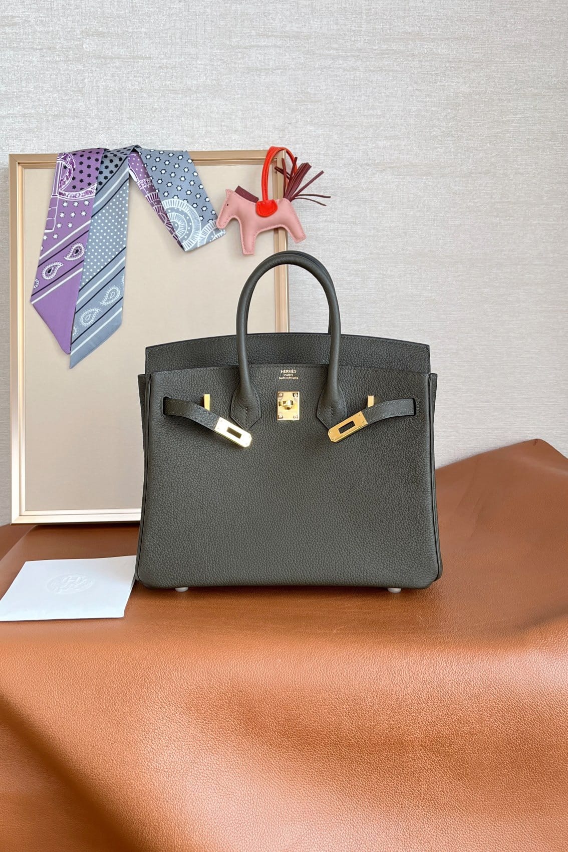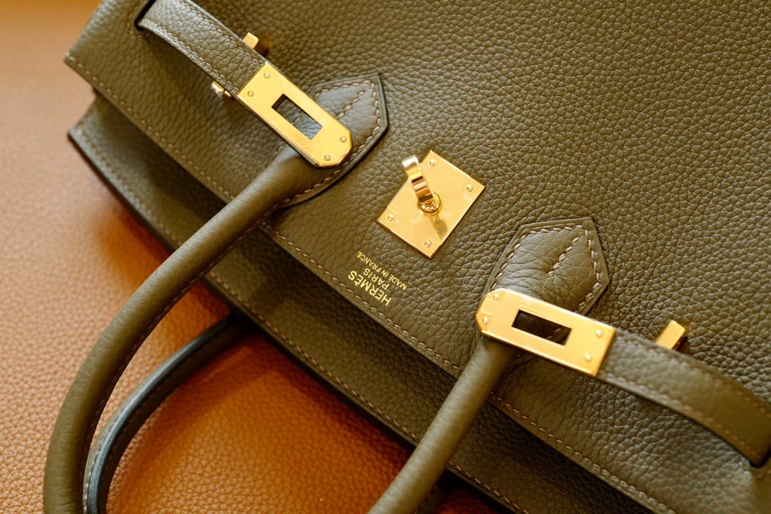 Birkin25 Hermès Birkin 25 Olive Green Togo Leather Handbag Gold Hardware Accompanied by: Hermès box, Hermès dustbag, felt, clochette, lock, two keys, clochette
