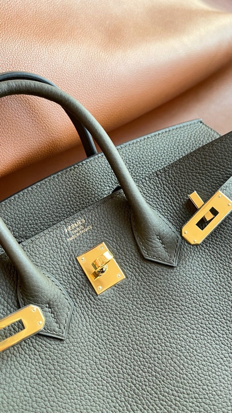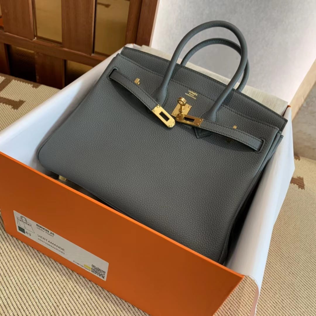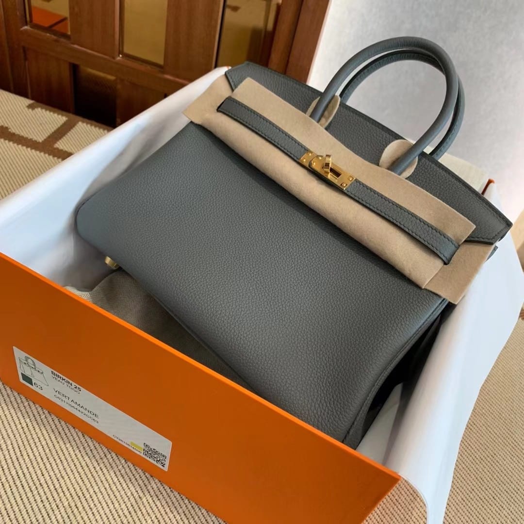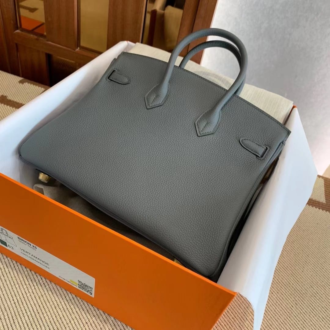 By Birkingdom in Birkin25 — 13 Oct 2025 Hermès Birkin 25 Vert Amande Togo Leather Handbag Gold Hardware 2025-092025-082023-122022-072020-06