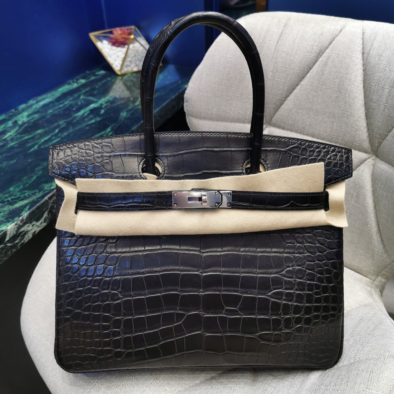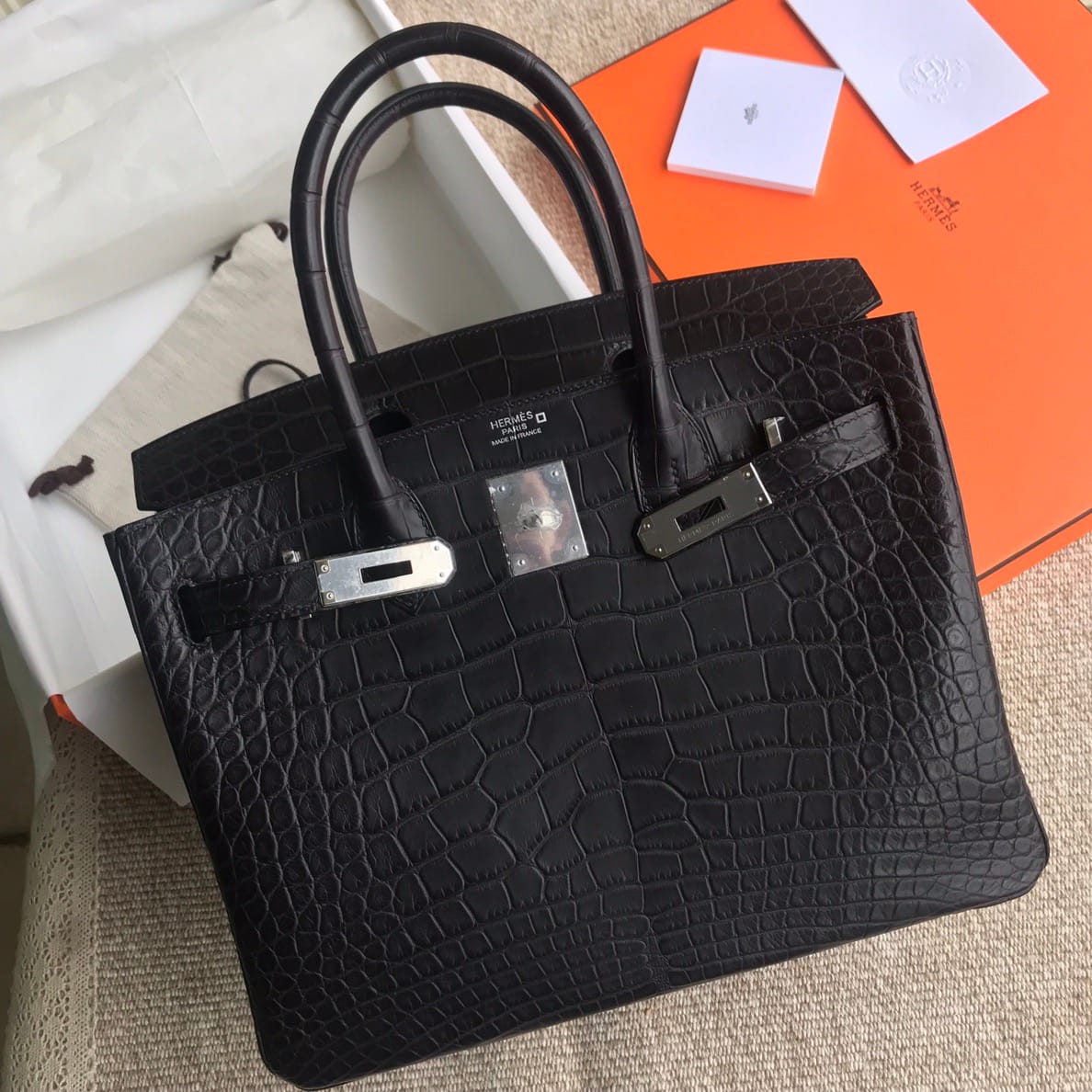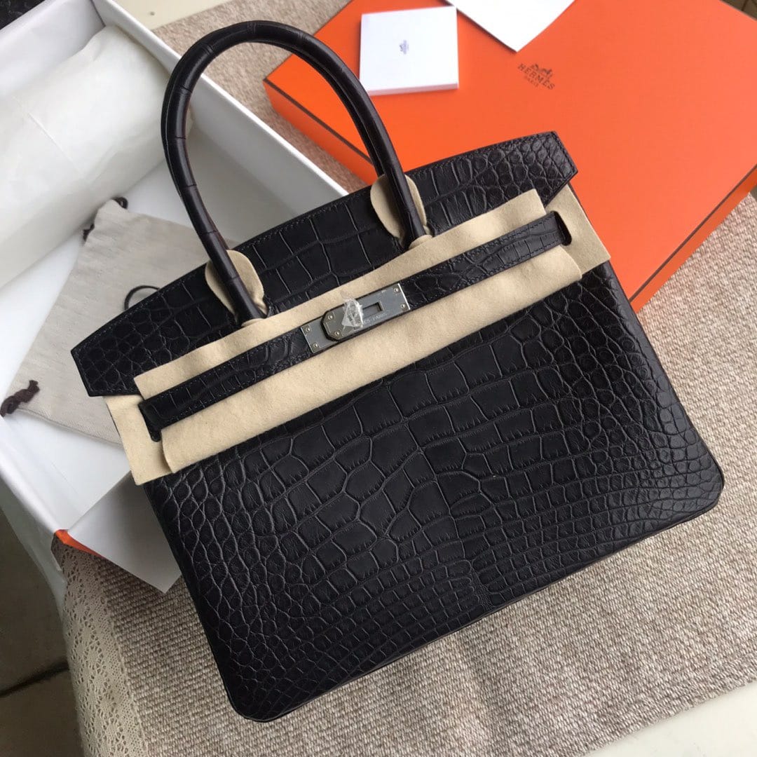 By Birkingdom in Birkin30 — 17 Oct 2025 Hermès Birkin 30 Black Matte Alligator Leather Handbag Palladium Hardware 2019-122019-052019-04