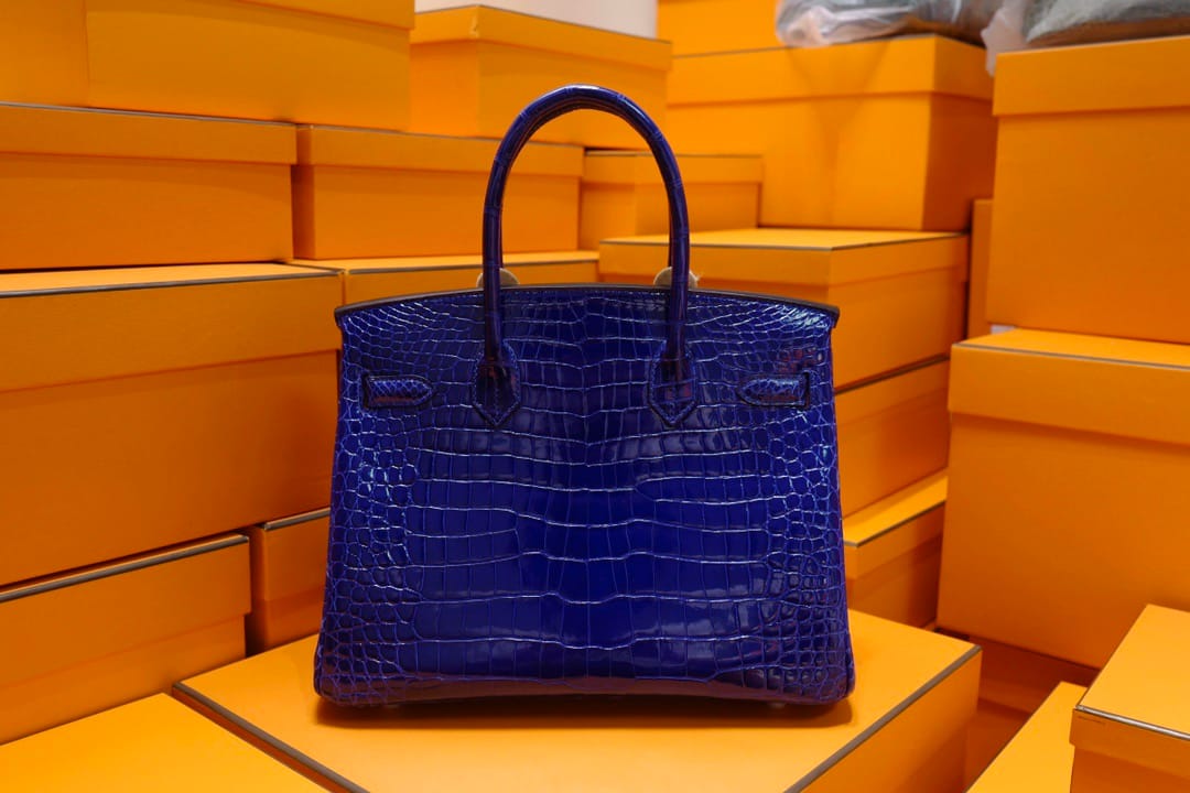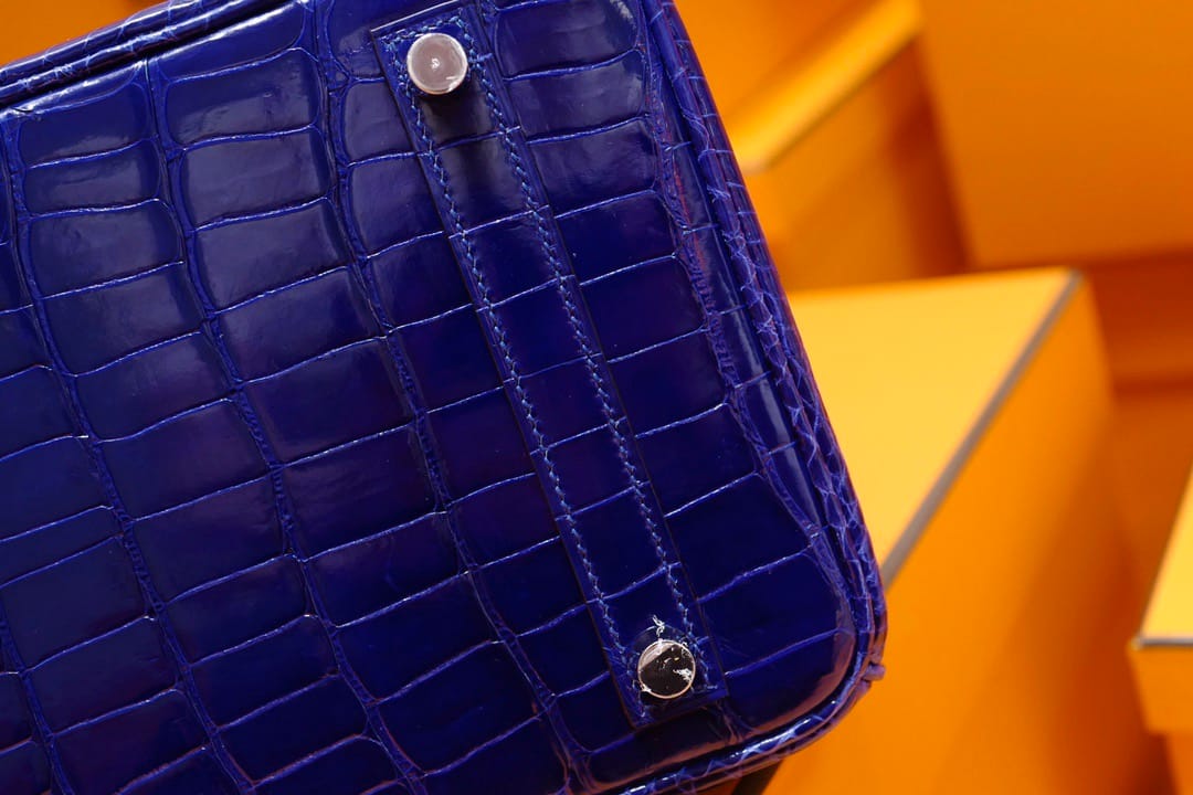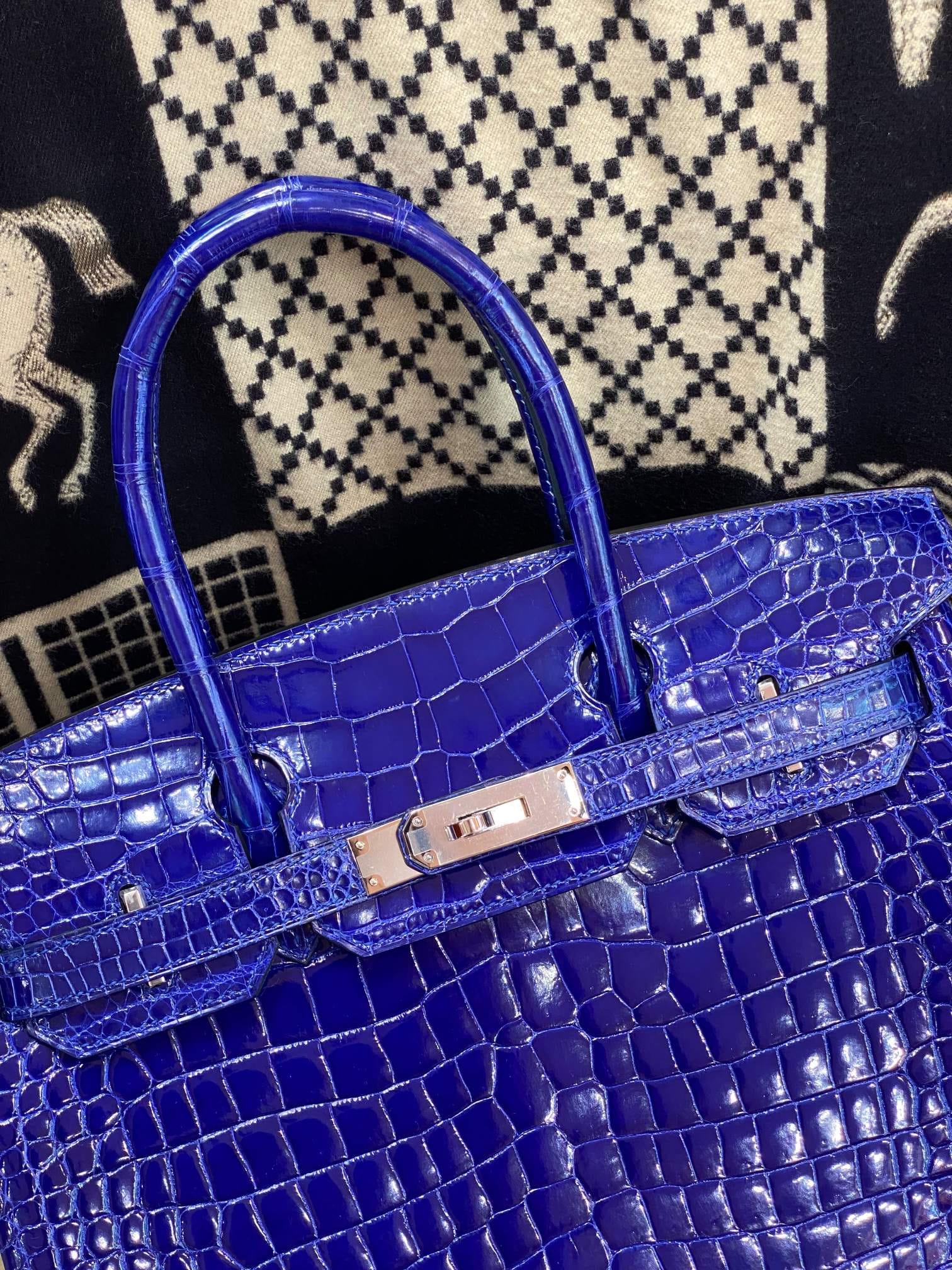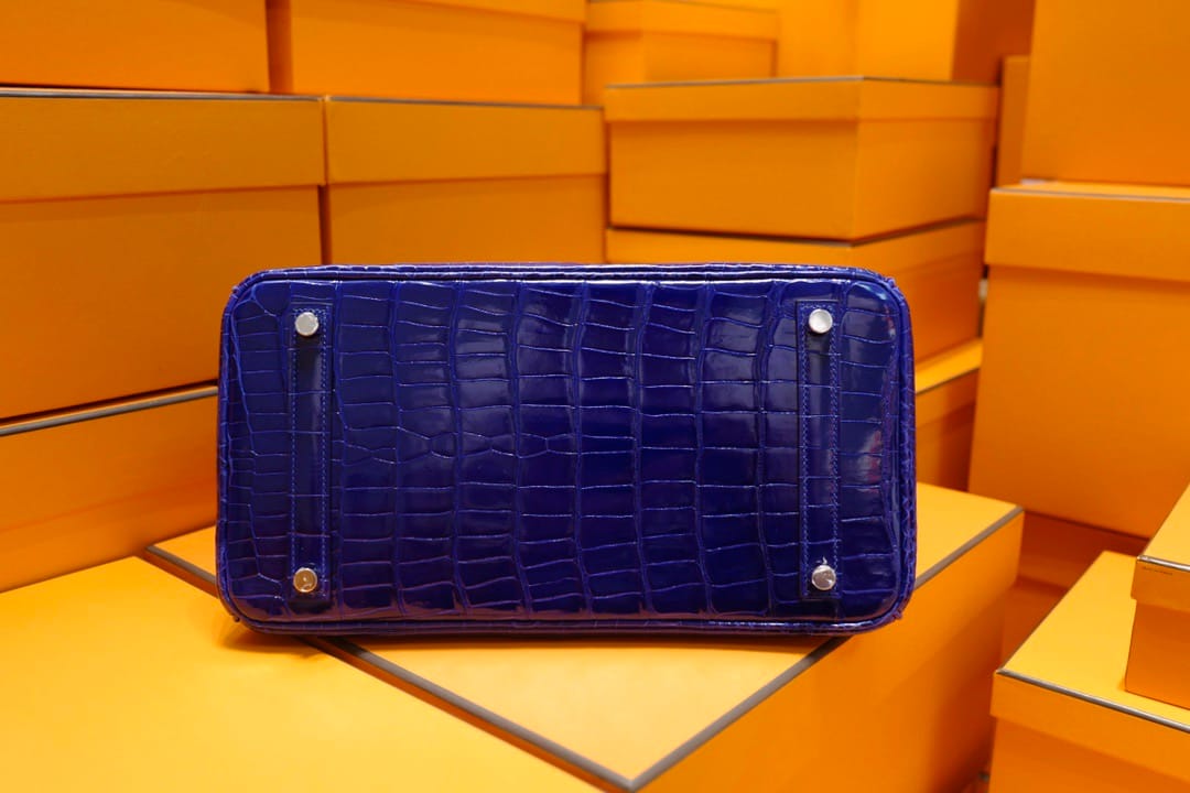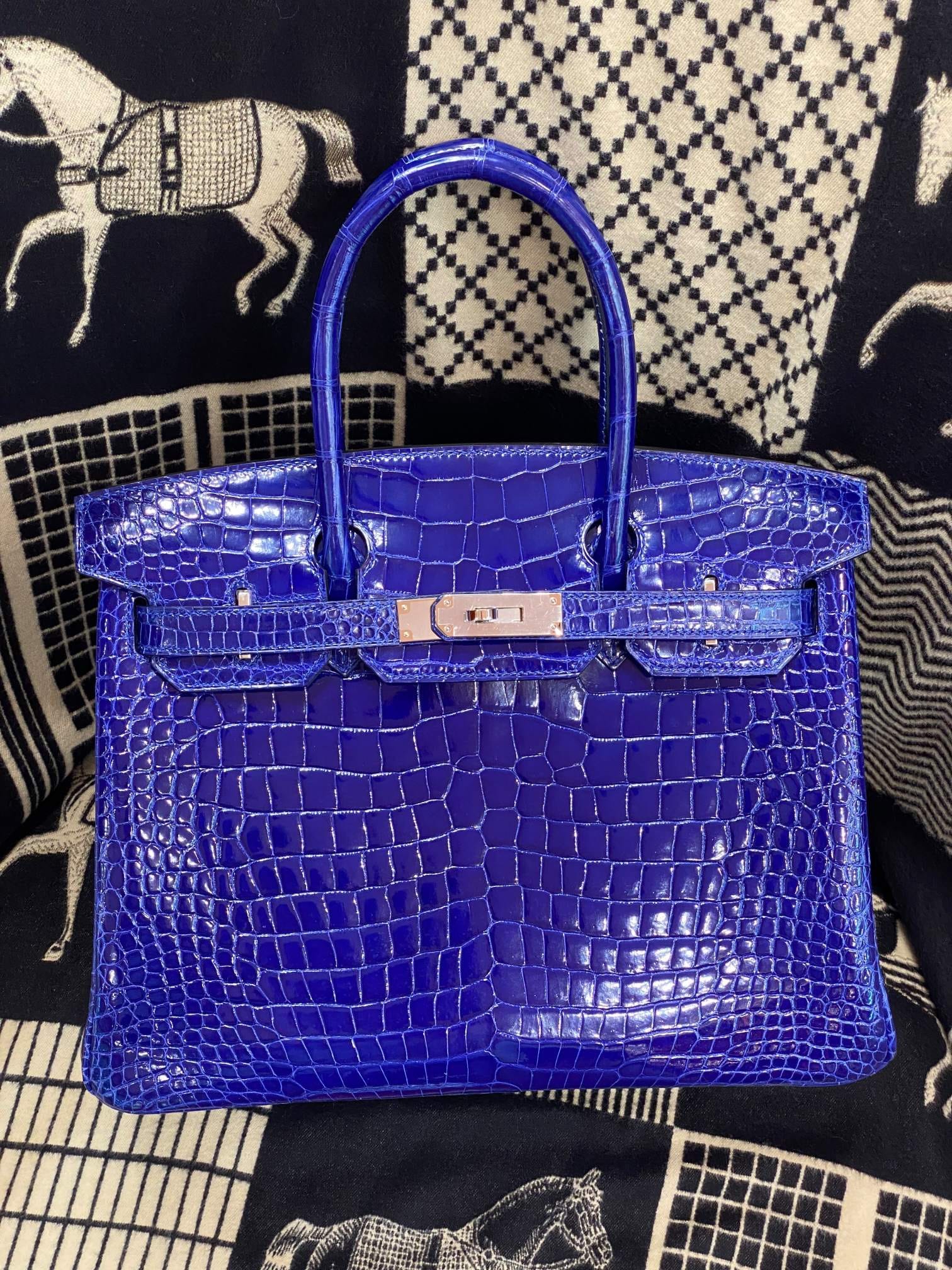 Hermès Birkin 30 Bleu Electric Shiny Porosus Crocodile Leather Handbag Palladium Hardware