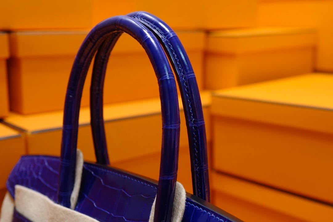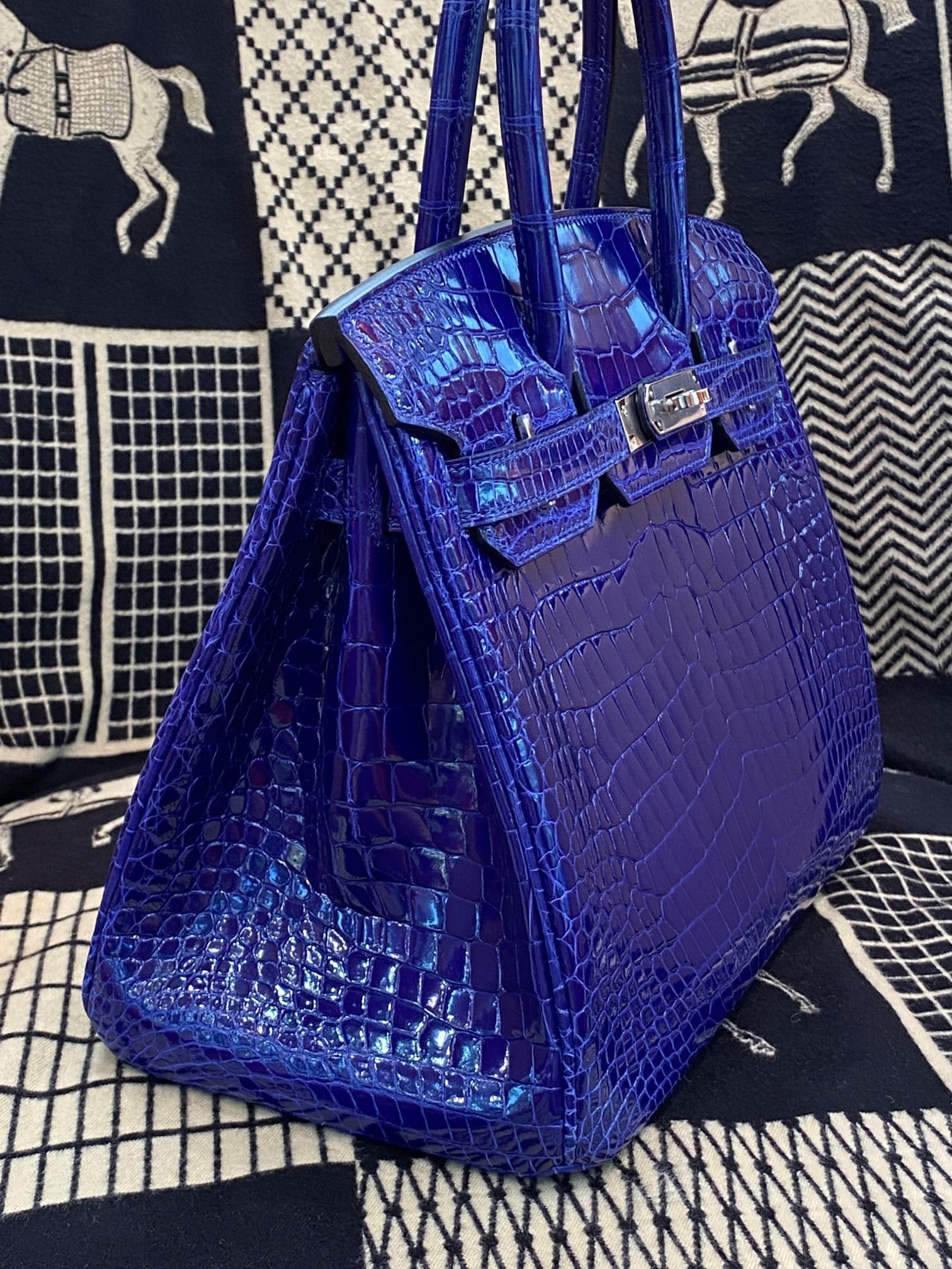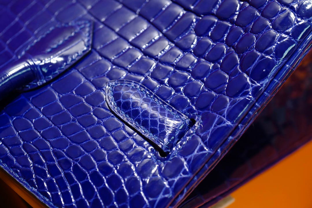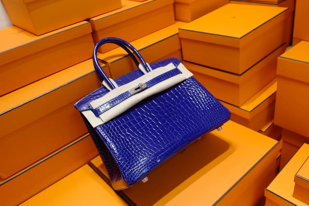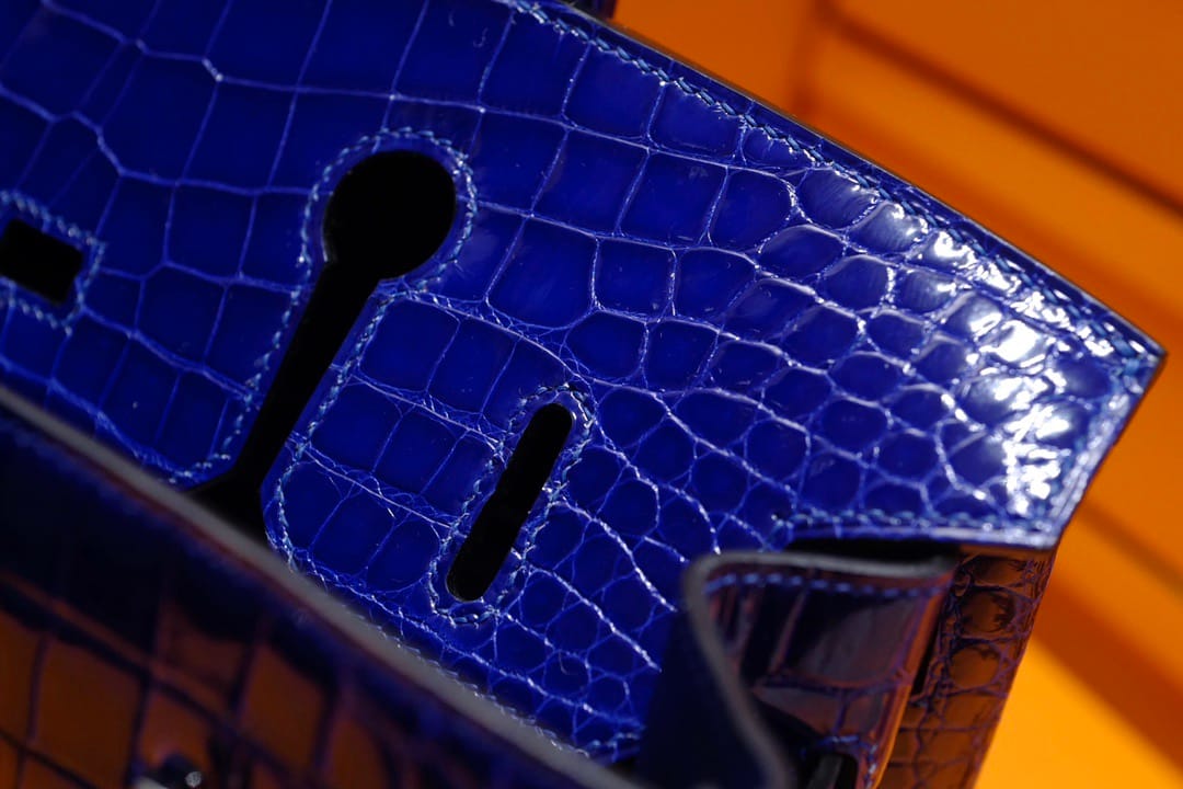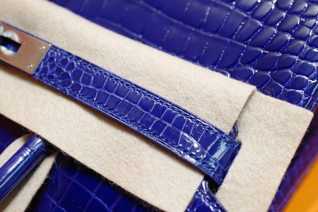 Hermès Birkin 30 Bleu Electric Shiny Porosus Crocodile Leather Handbag Palladium Hardware
