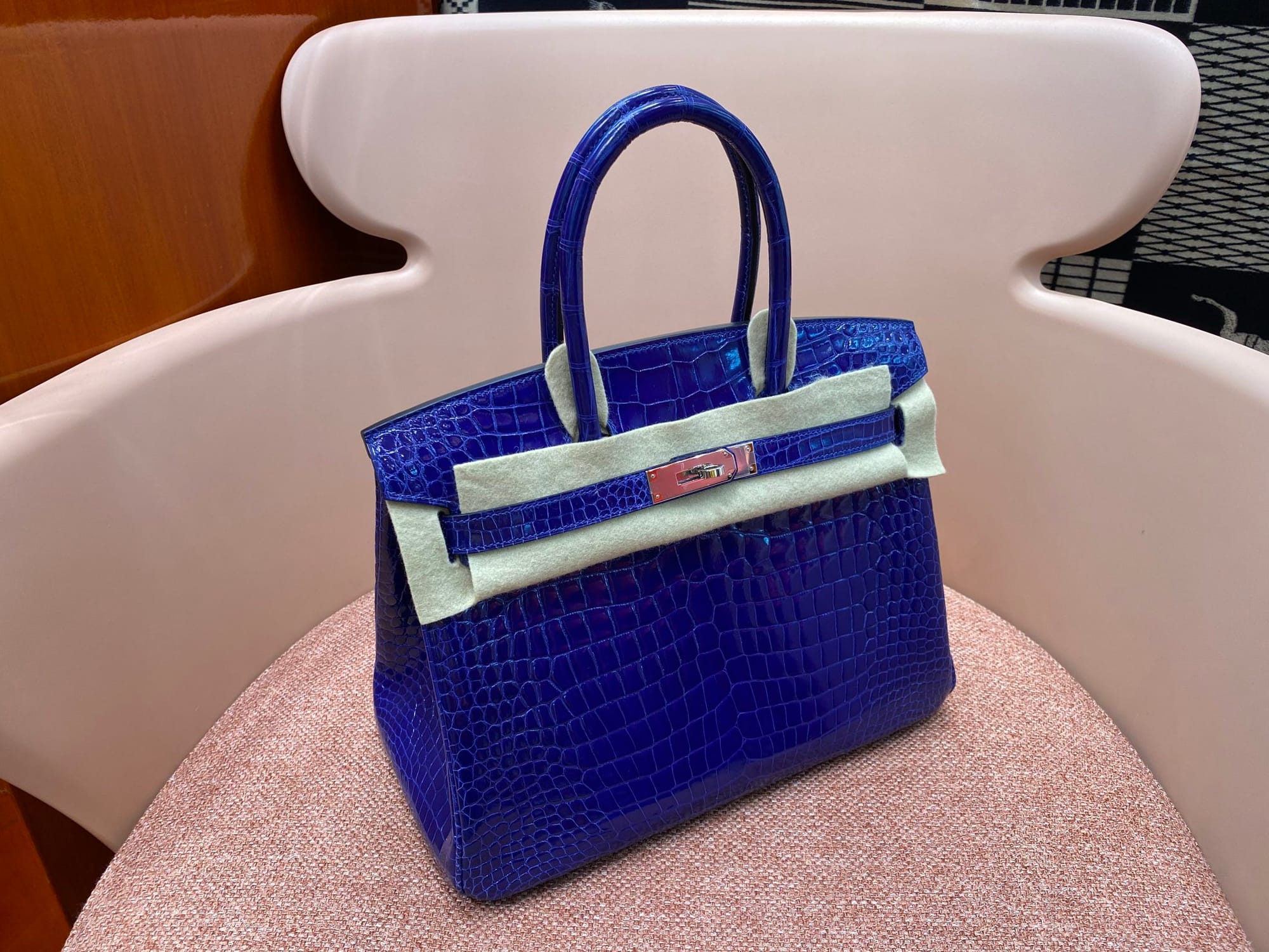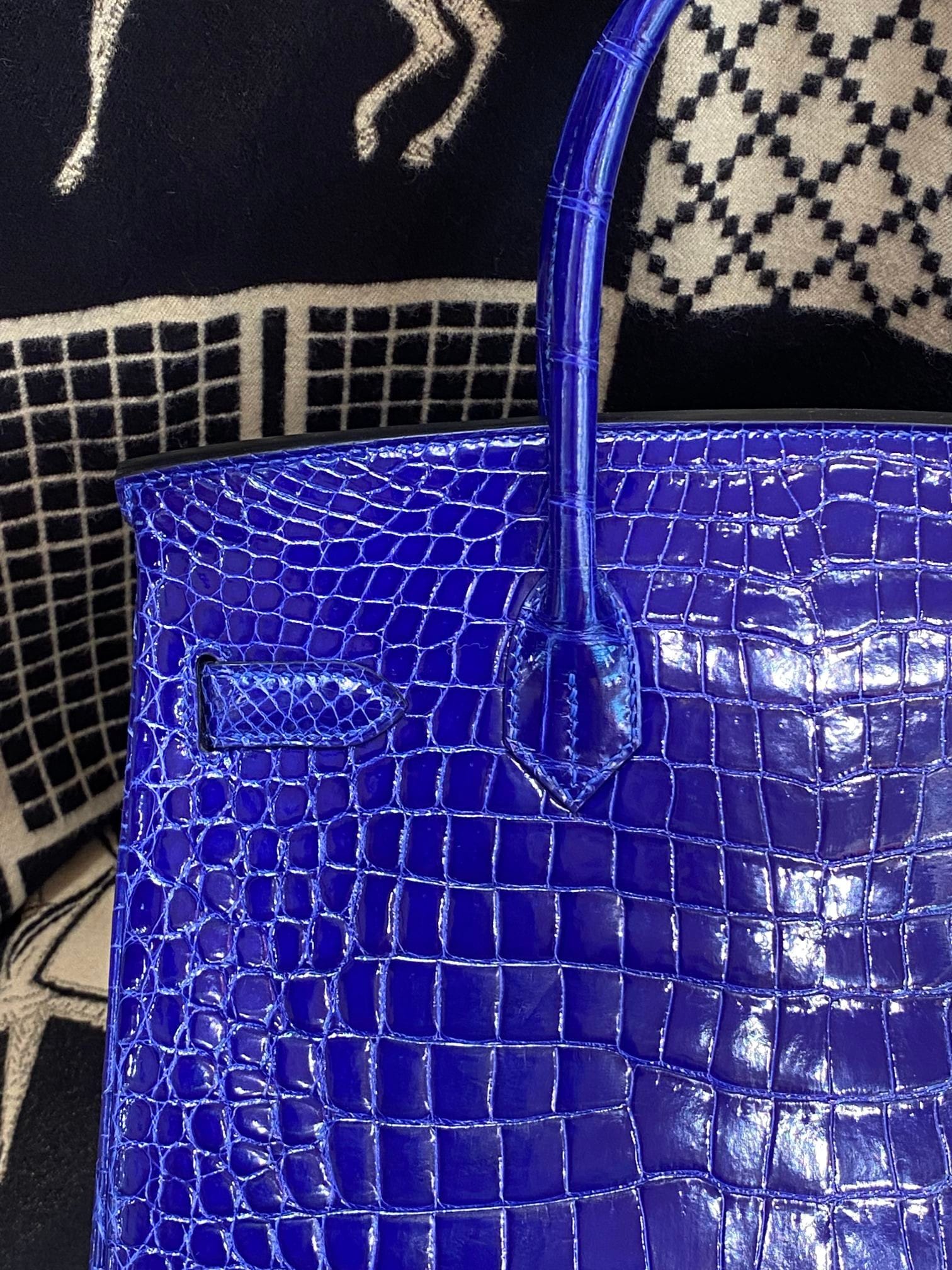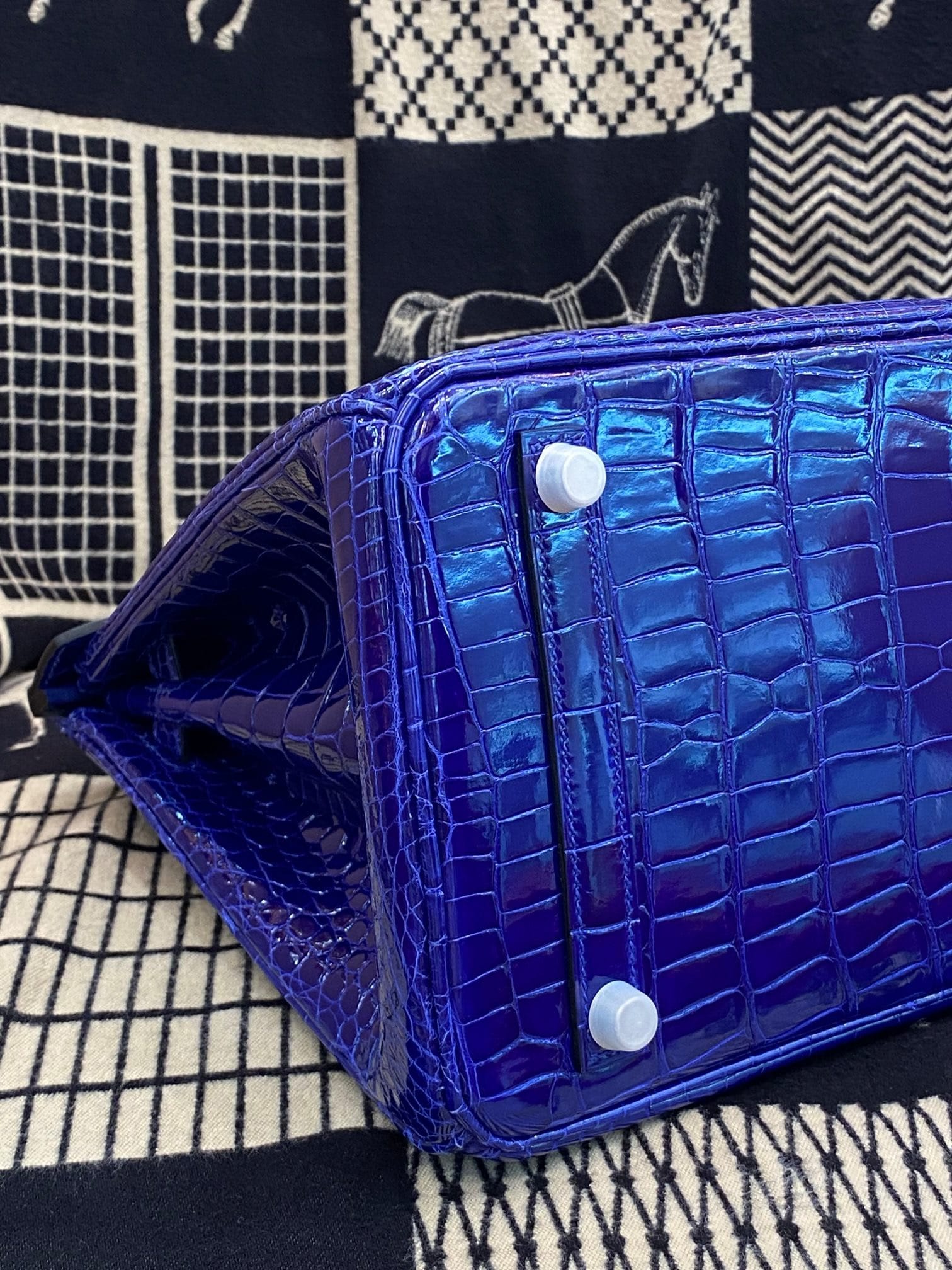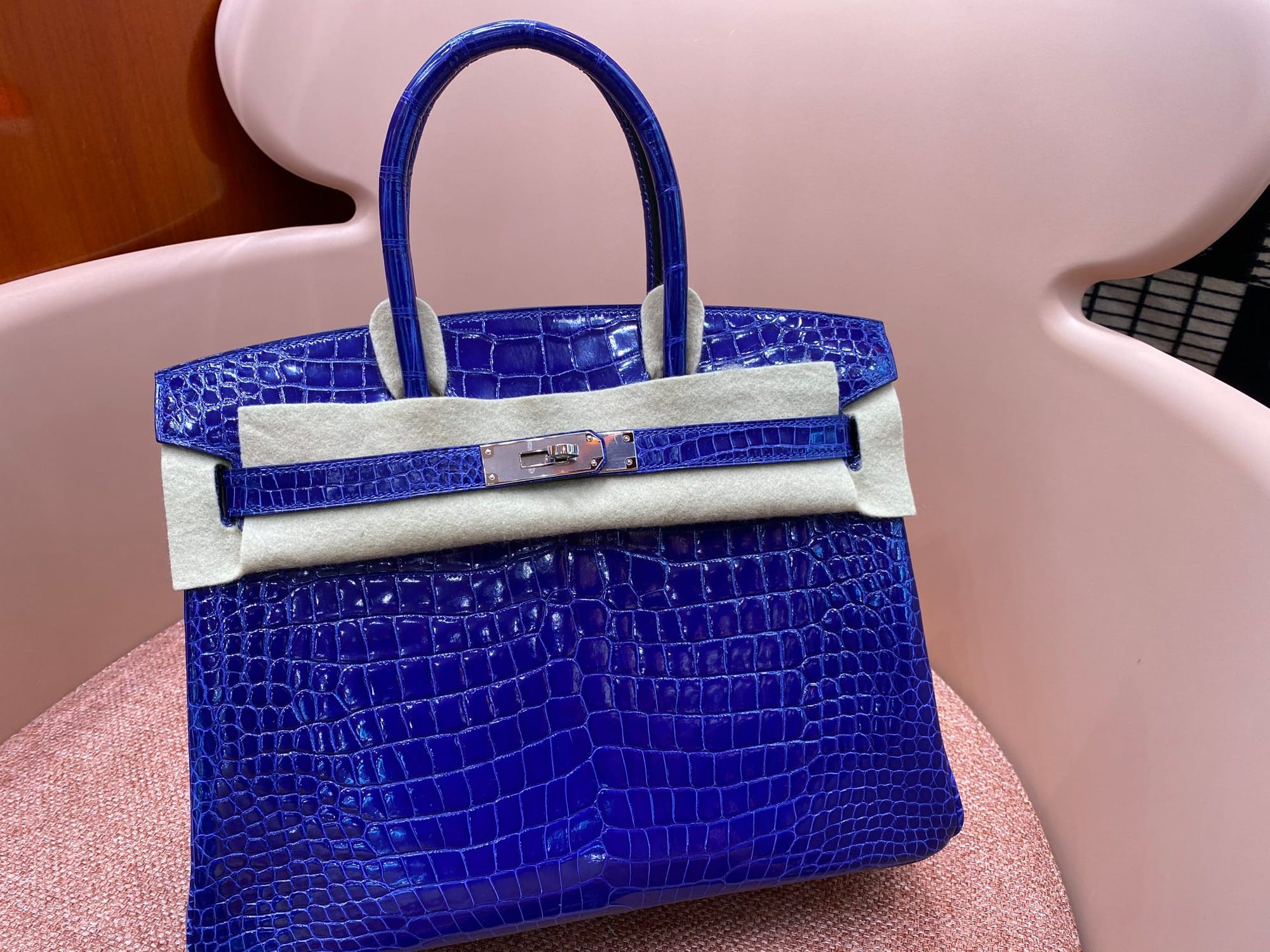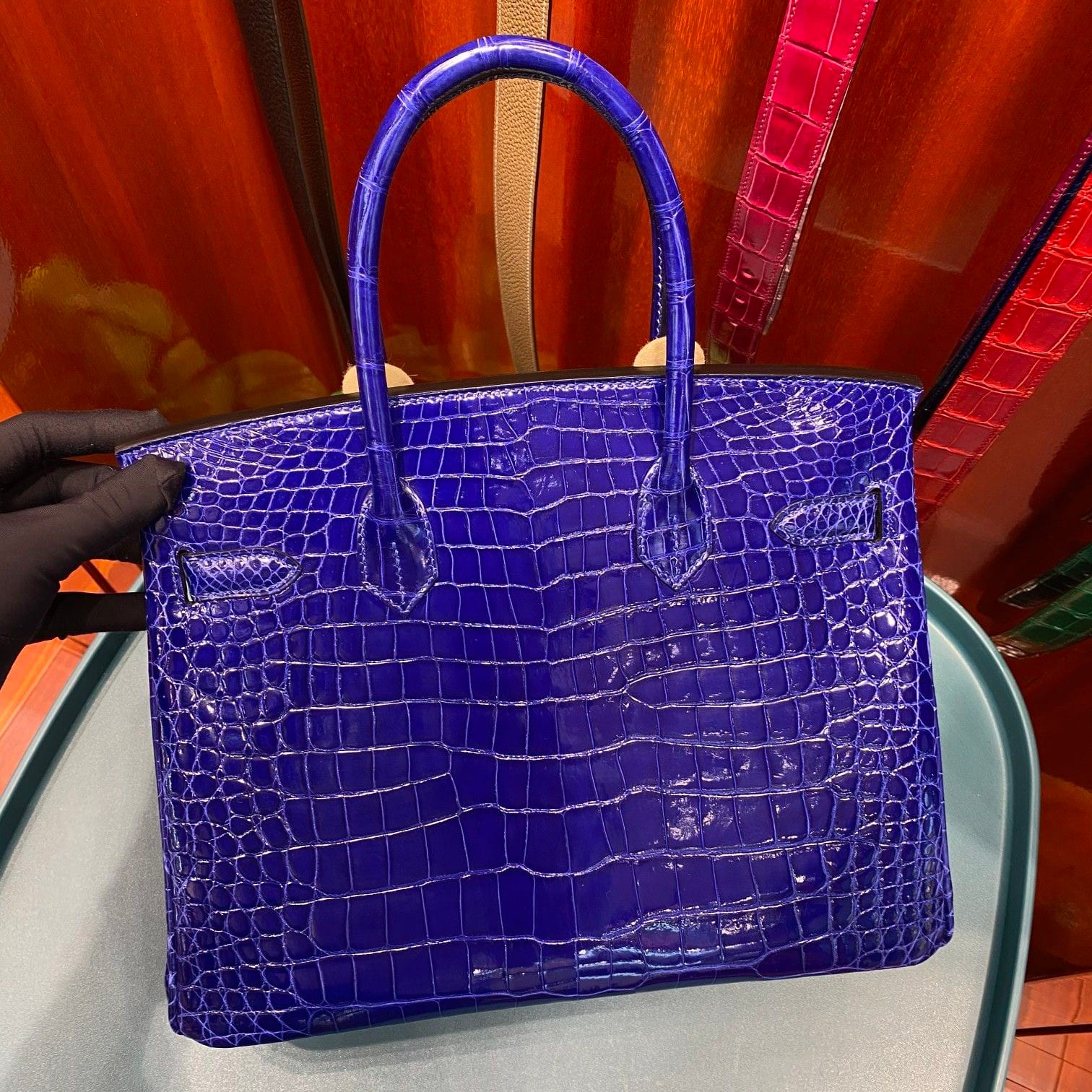 Hermès Birkin 30 Bleu Electric Shiny Porosus Crocodile Leather Handbag Palladium Hardware
