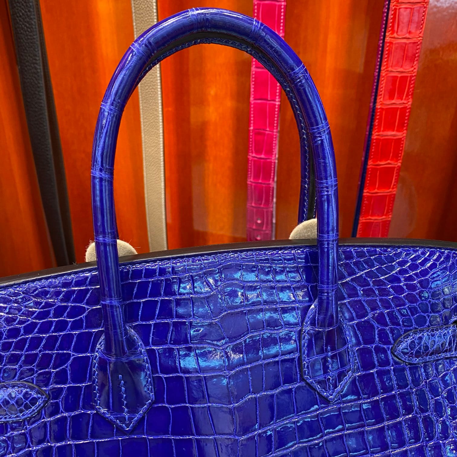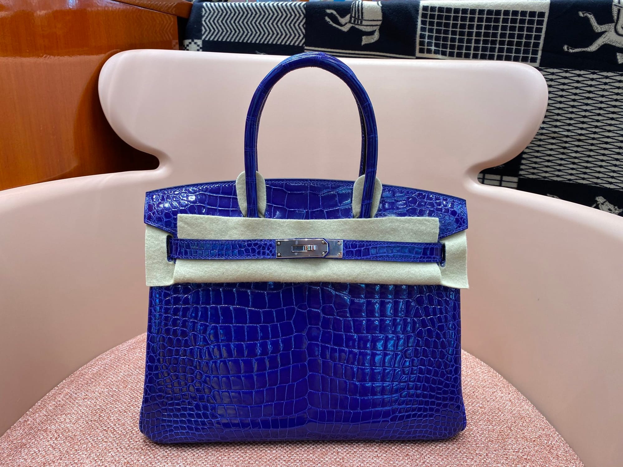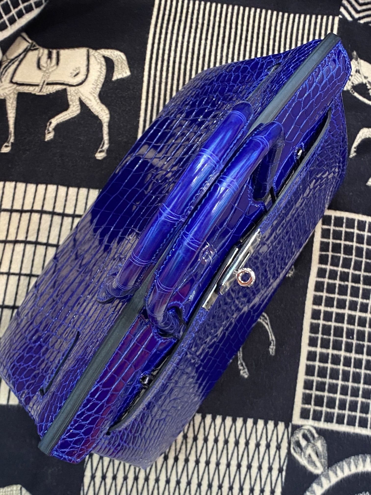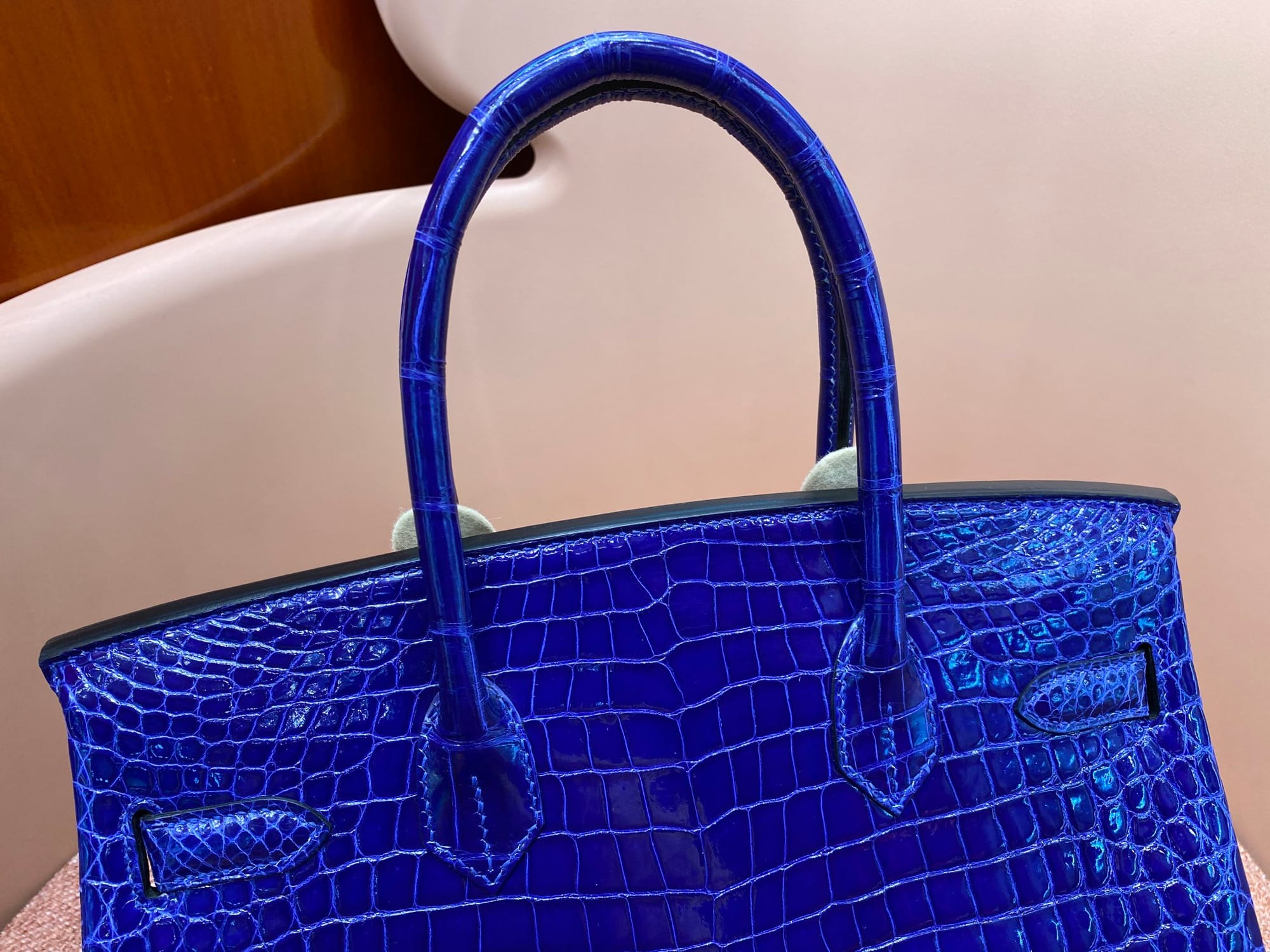 Hermès Birkin 30 Bleu Electric Shiny Porosus Crocodile Leather Handbag Palladium Hardware