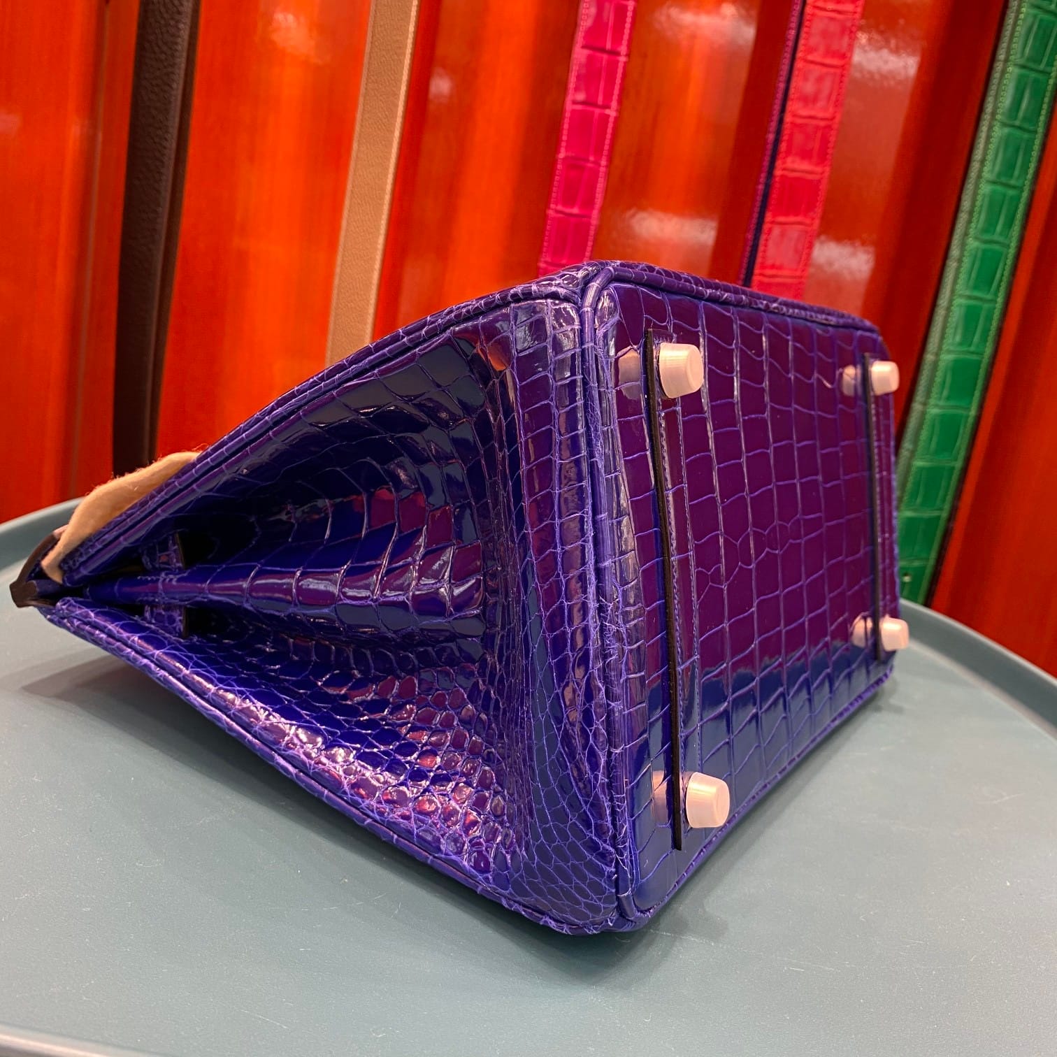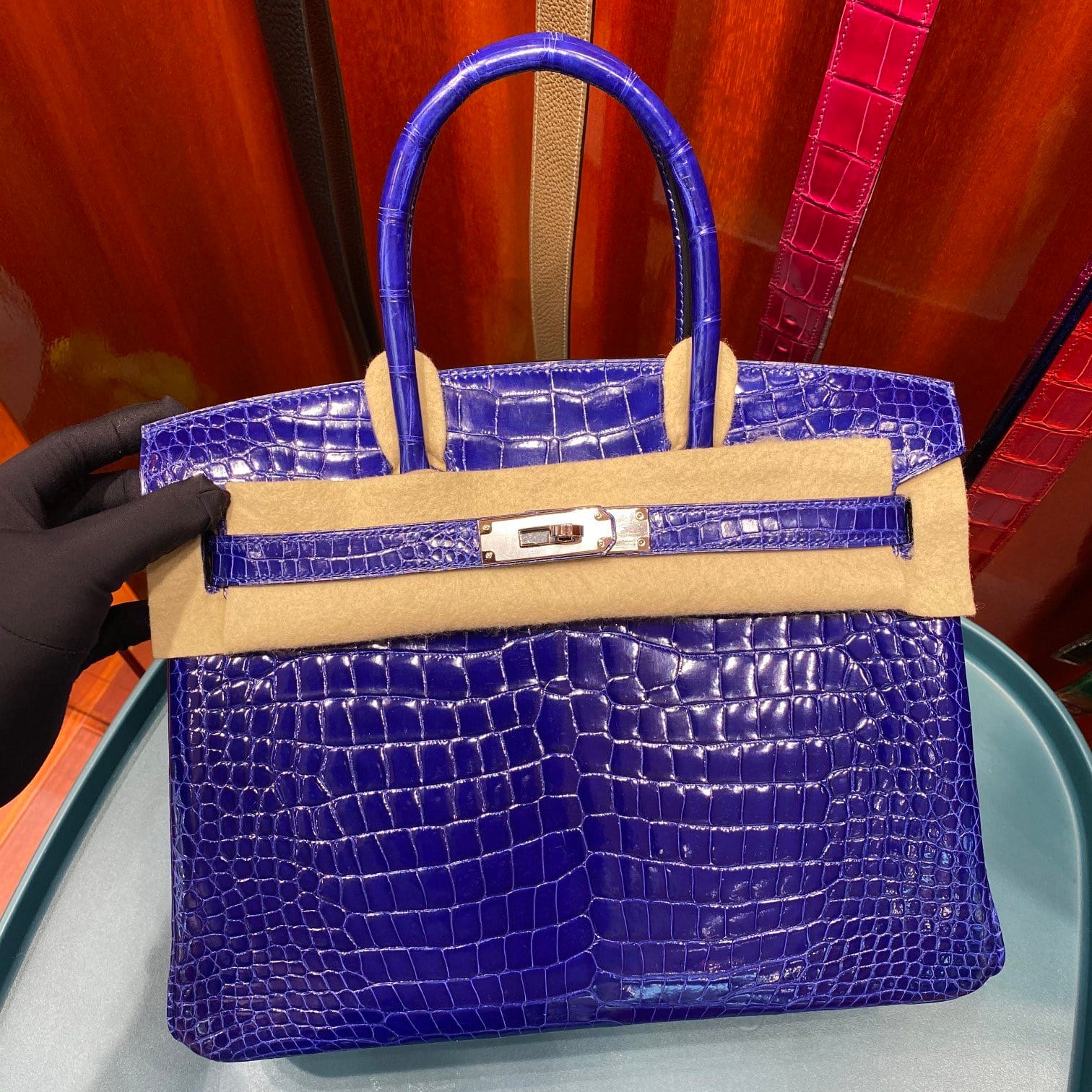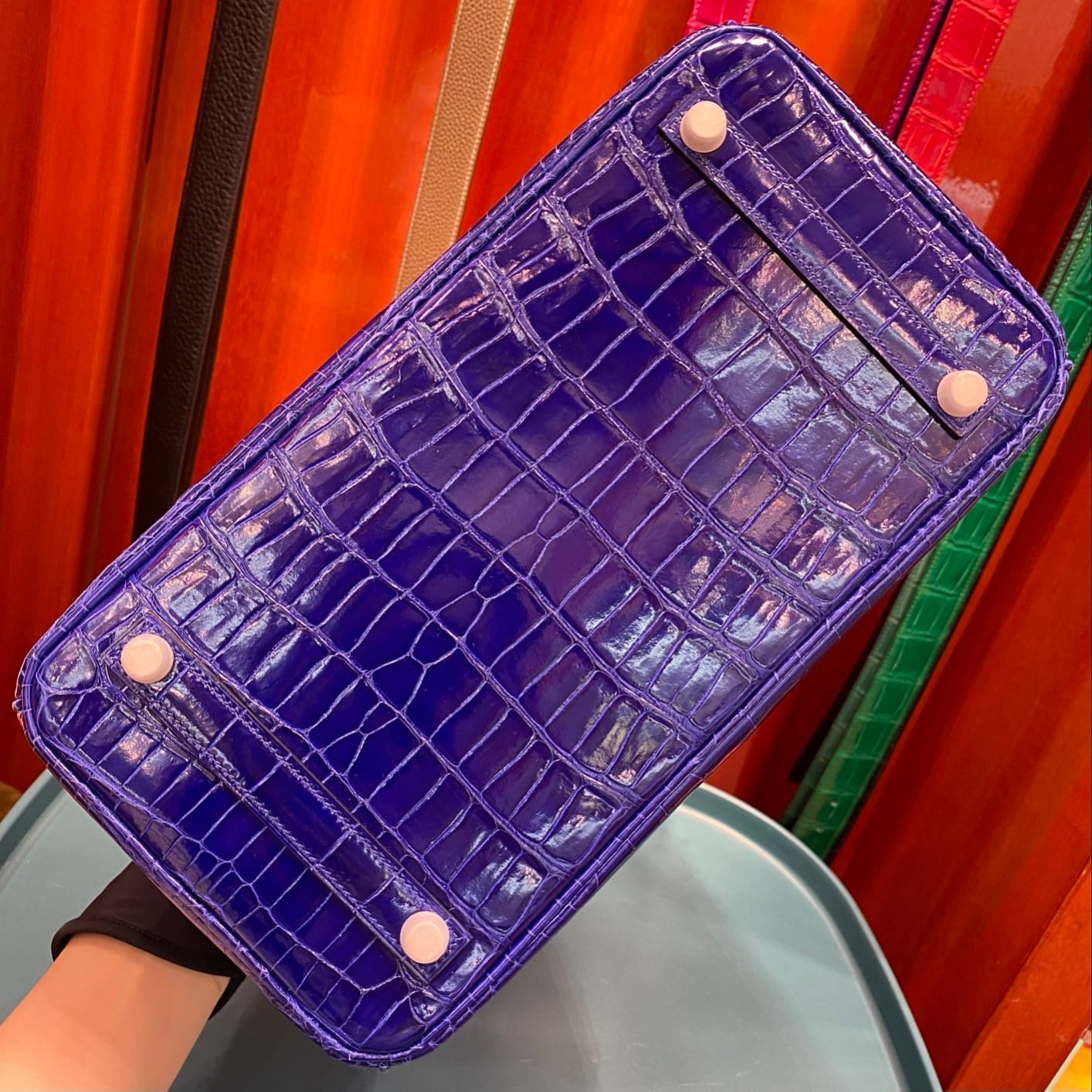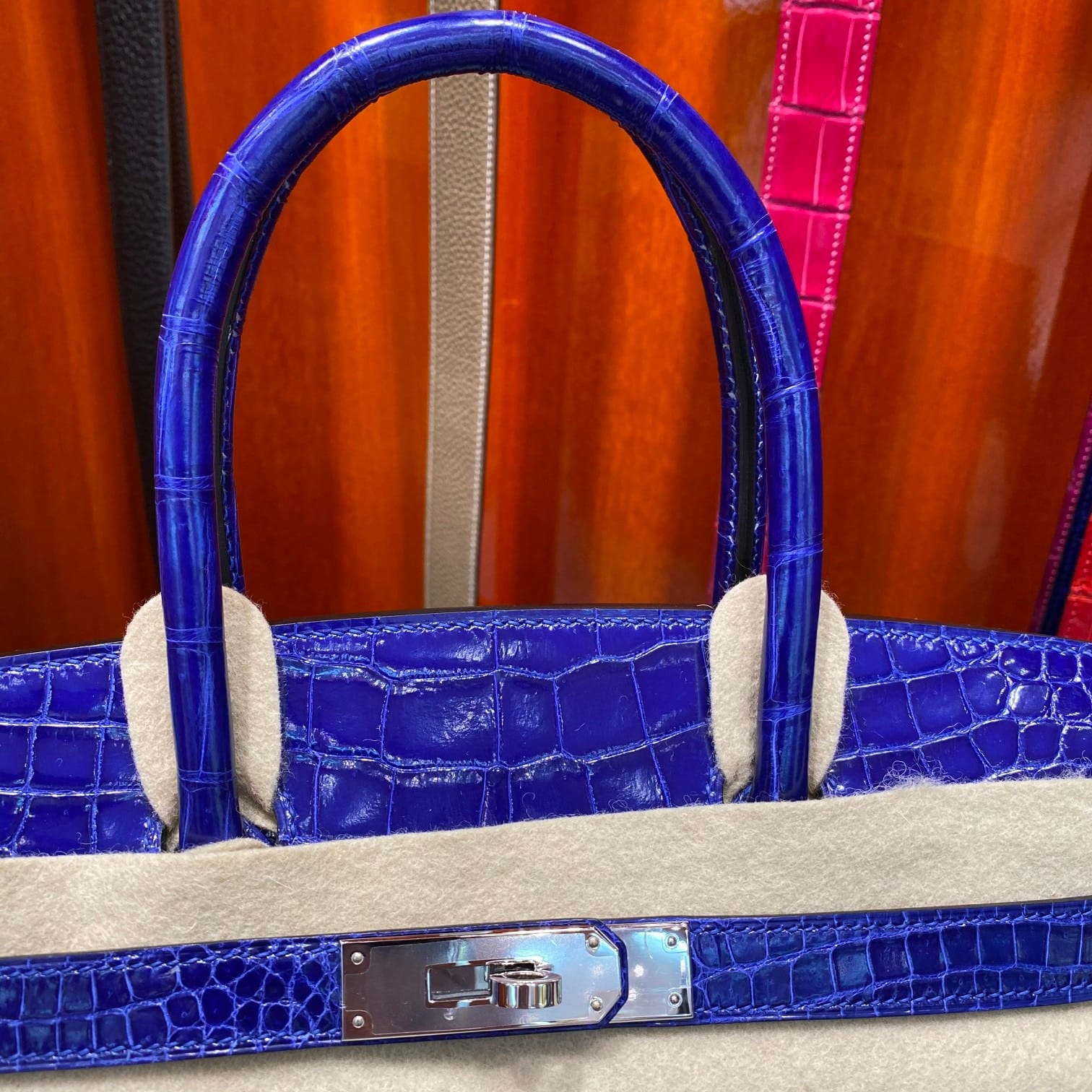 Hermès Birkin 30 Bleu Electric Shiny Porosus Crocodile Leather Handbag Palladium Hardware