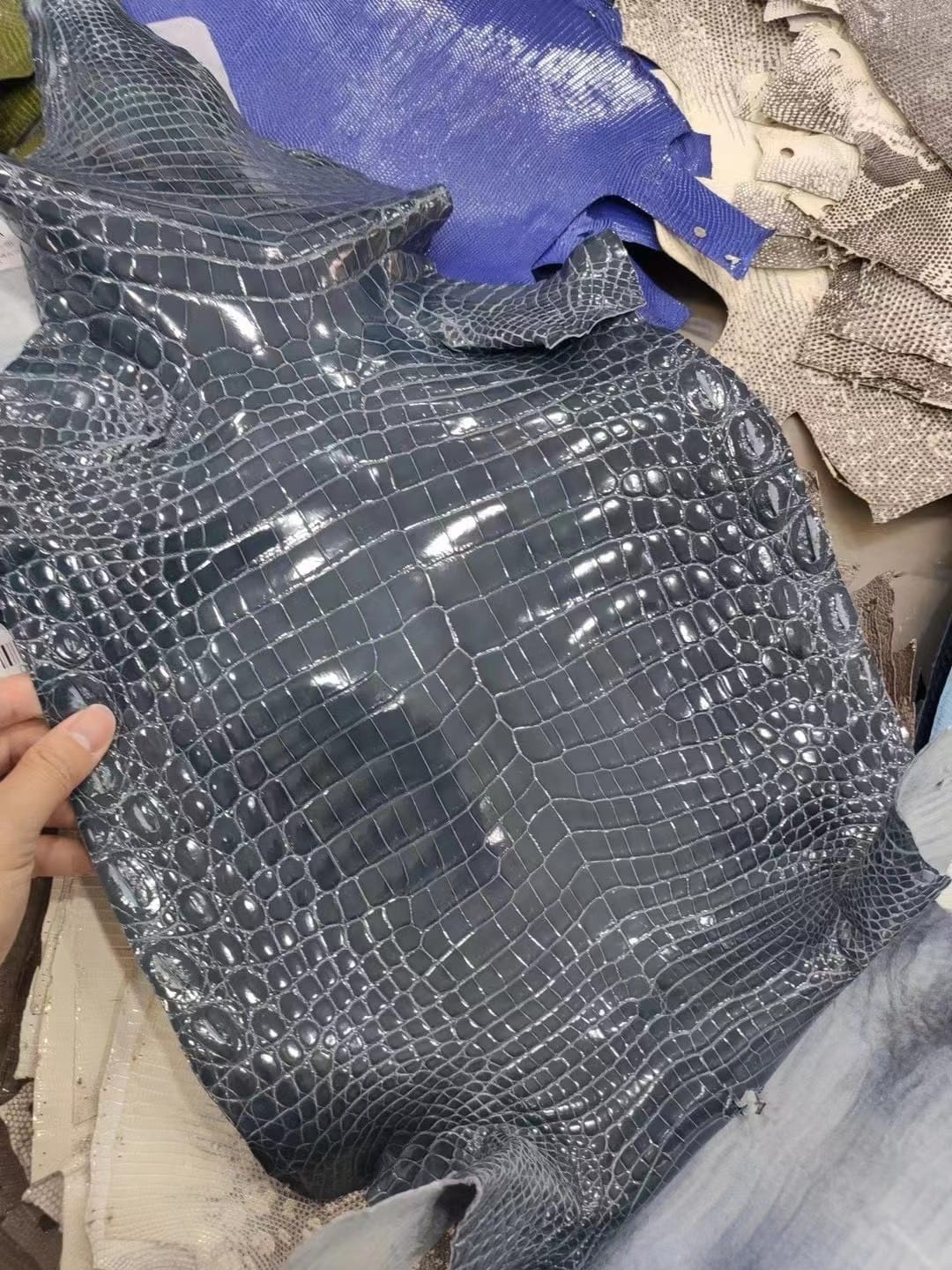 Leather Hermès 100% Authentic Boutique Glossy Crocodile 100% Authentic Hermès Boutique Crocodile Leather (Glossy Porosus “V-Scale” Type) Available for