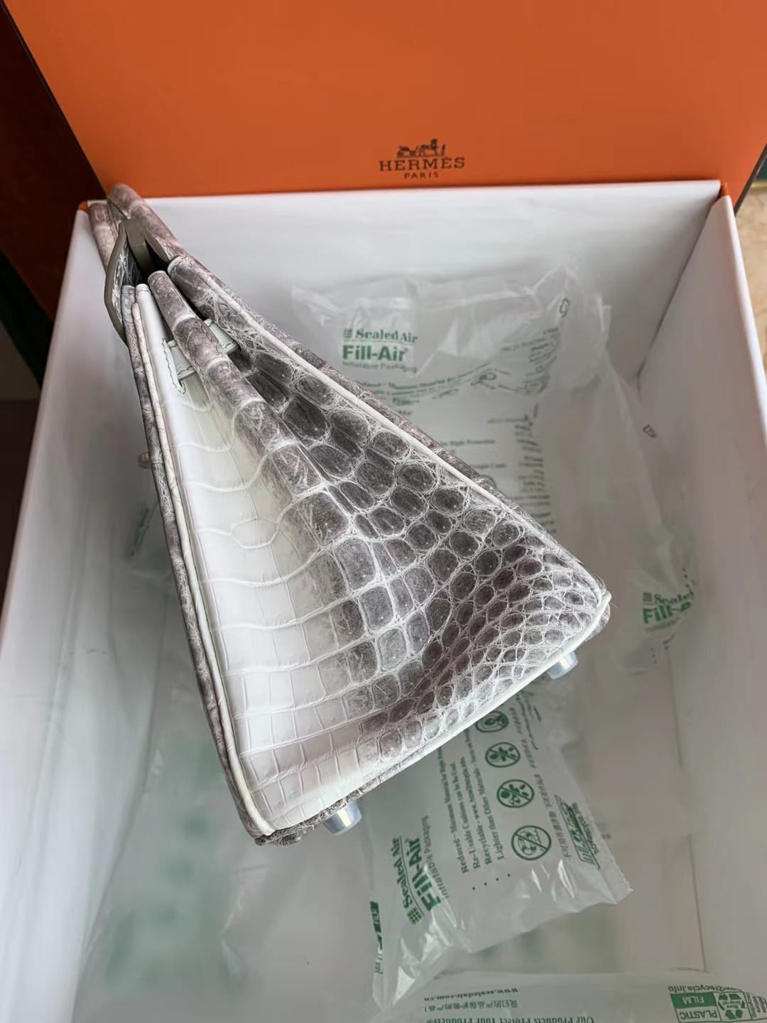 Global top-tier replica of the Hermès Himalaya Birkin 25 Niloticus Matte Crocodile Diamond Encrusted Palladium Hardware — the queen of bags, every goddess’s ultimate Dream Bag!